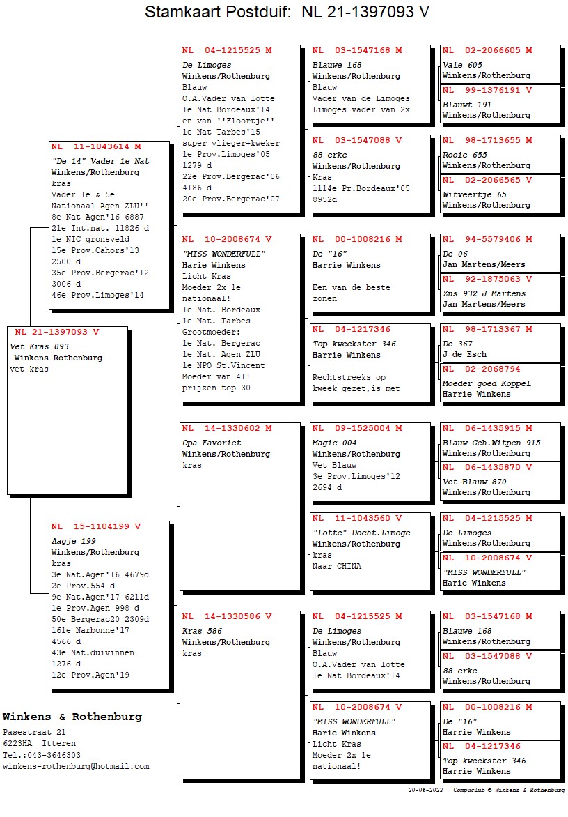 1st Prov. Limoges 1,279b. and is father to “Lotte” (1st Nat. Bordeaux ’14) and “Floortje” (1st Nat. Tarbes ’15)