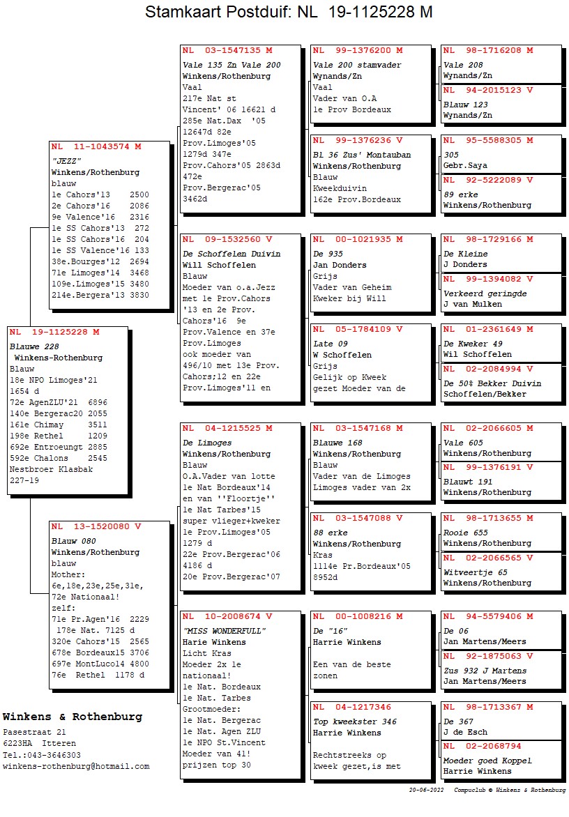 Won 1st Prov. Limoges 1,279b. and is father to “Lotte” (1st Nat. Bordeaux ’14) and “Floortje” (1st Nat. Tarbes ’15)