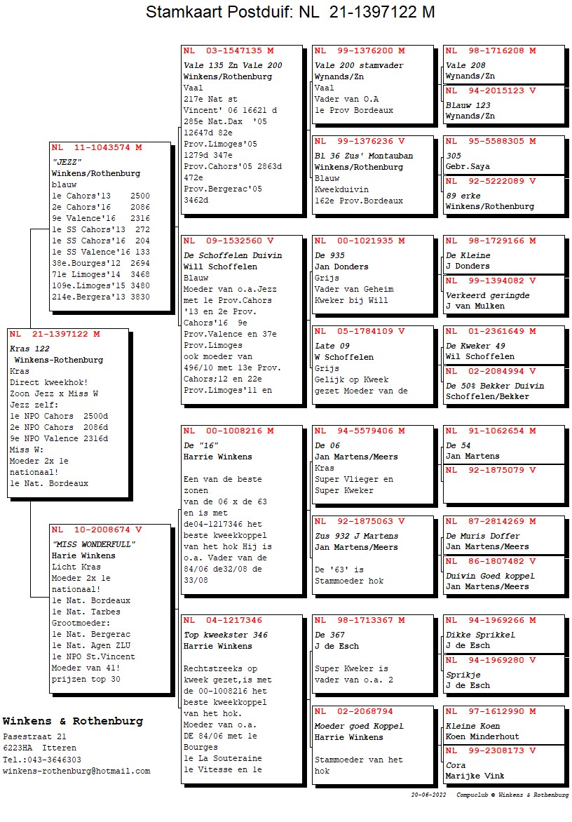 Born out “De 16” (Jan Meers via Harrie Winkens) x “NL04-1217346” (base breeding hen)