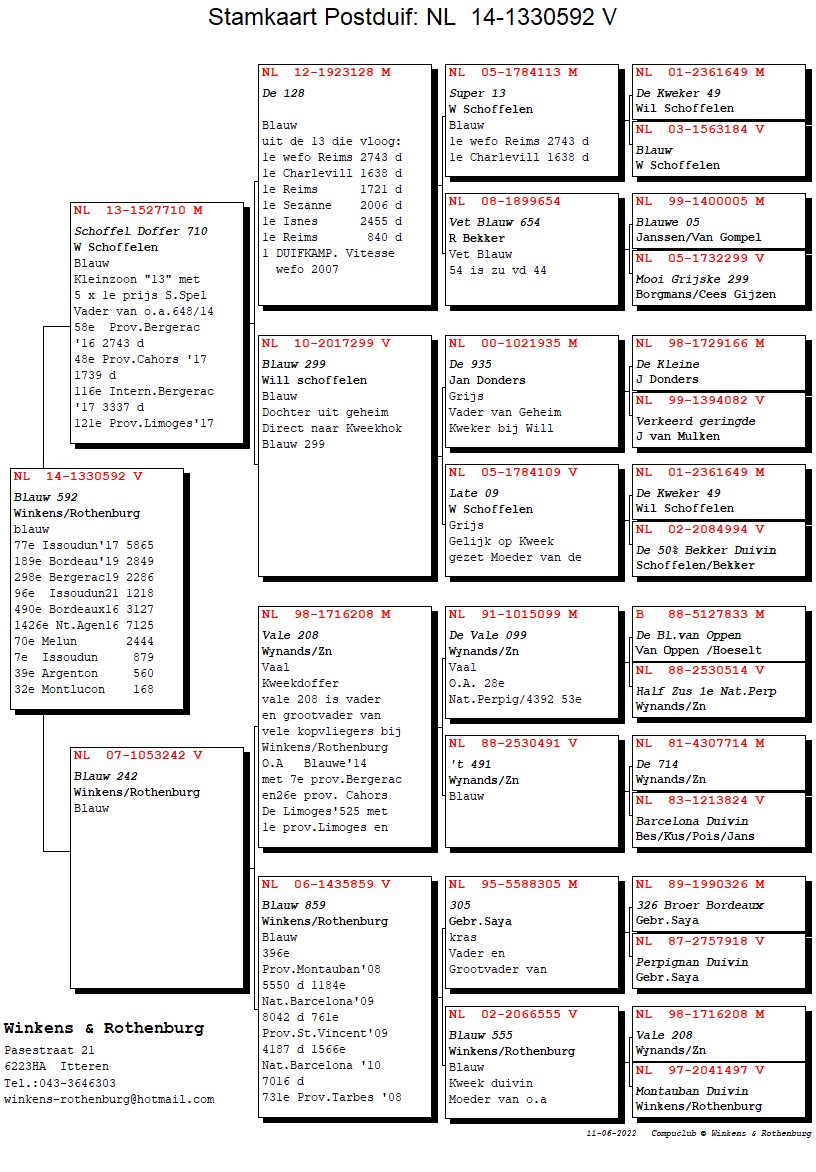 “Blauw 648”: 48th Prov. Cahors 1,739b. – 58th Prov. Bergerac ’16 against 2,743b. – 116th Internat. Bergerac ’17 against 3,337b. – 121st Prov. Limoges 2,109b. - and so on