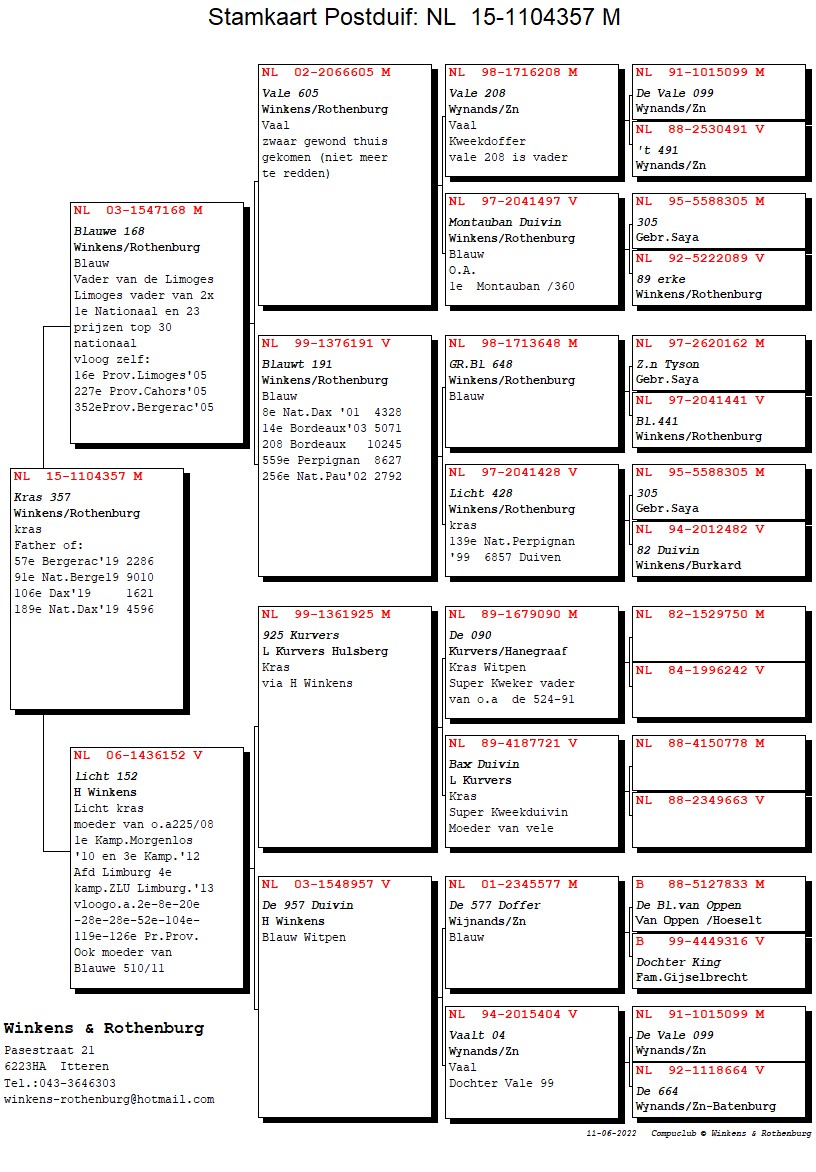 “De Limoges”won 1st Prov. Limoges 1,279b. and is father to “Lotte” (1st Nat. Bordeaux ’14) and “Floortje” (1st Nat. Tarbes ’15)
