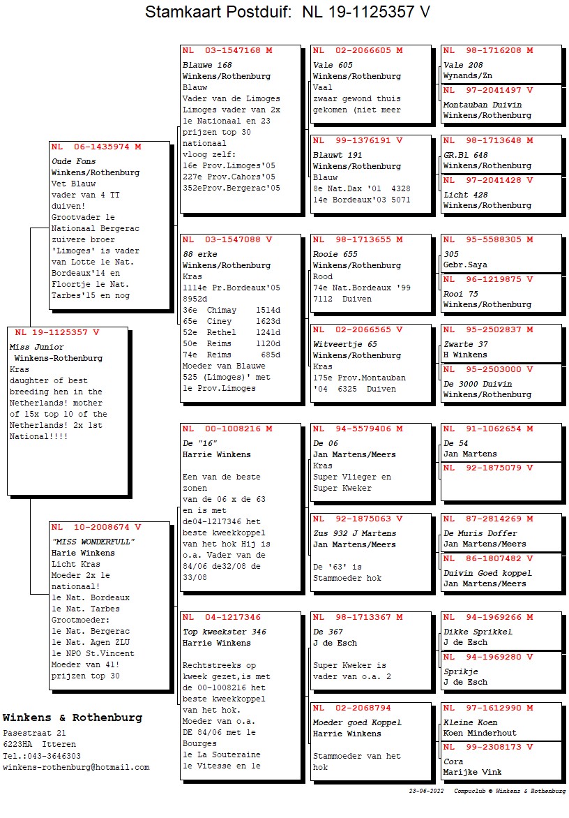 Born out “De 16” (Jan Meers via Harrie Winkens) x “NL04-1217346” (base breeding hen)