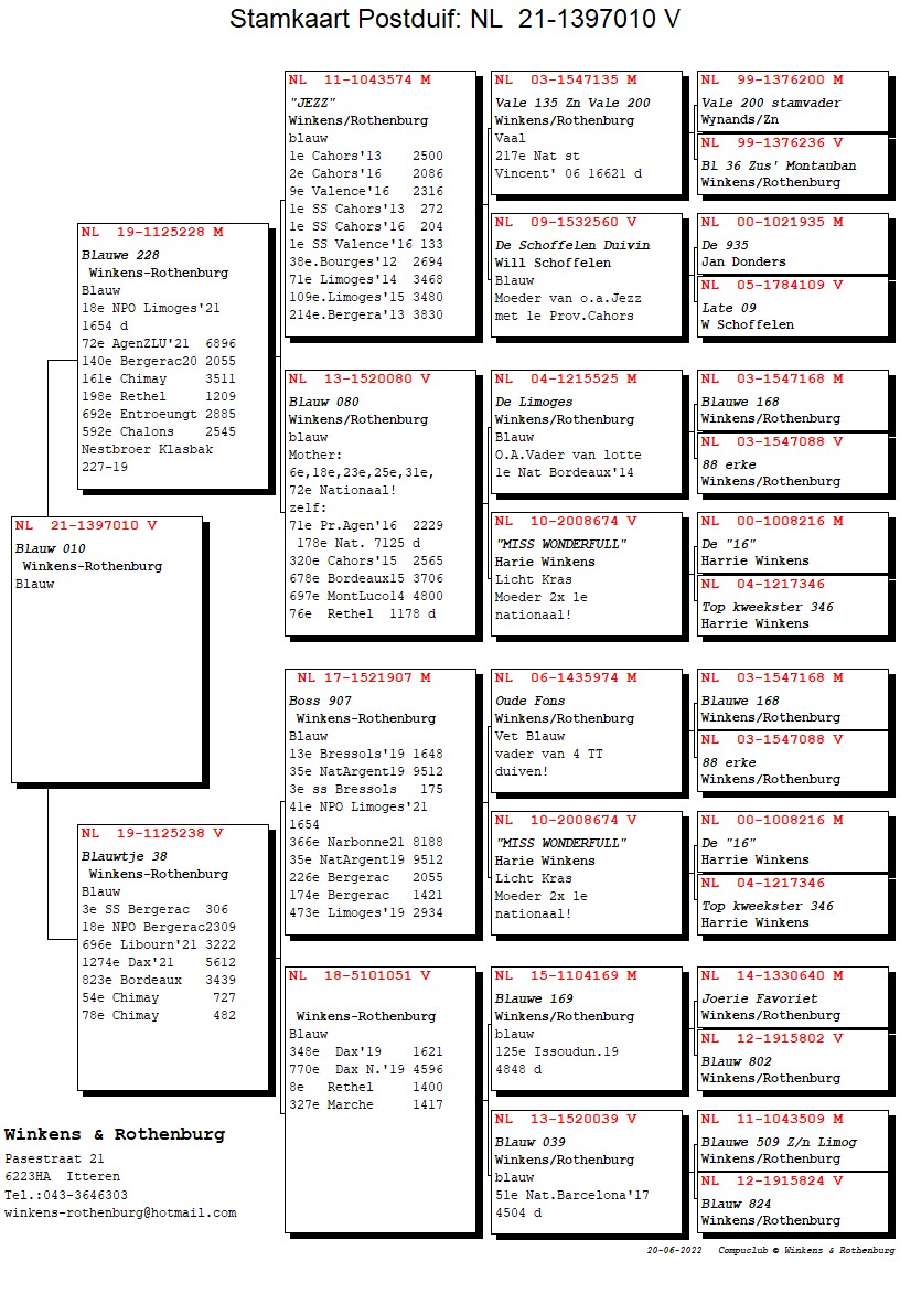 Won: 3rd Bergerac 306b. – 18th NPO Bergerac 2,309b. – 54th Chimay 727b.