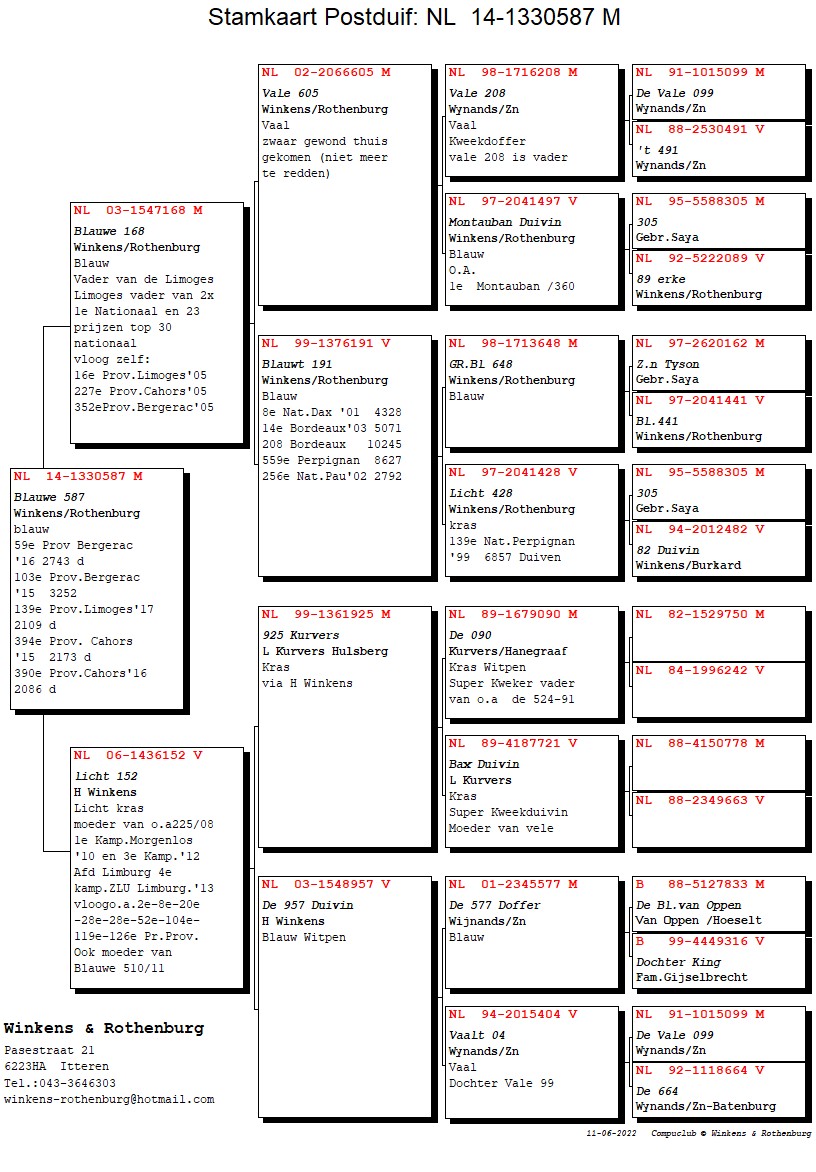 “De Limoges”won 1st Prov. Limoges 1,279b. and is father to “Lotte” (1st Nat. Bordeaux ’14) and “Floortje” (1st Nat. Tarbes ’15)