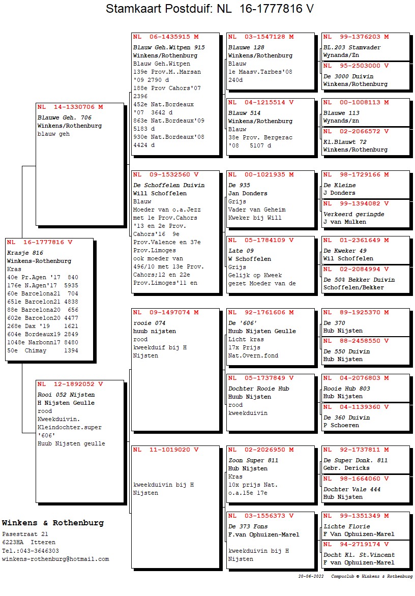 Born out “NL06-1435915” (strain 50% Wijnands) x “De Schoffelen duivin”