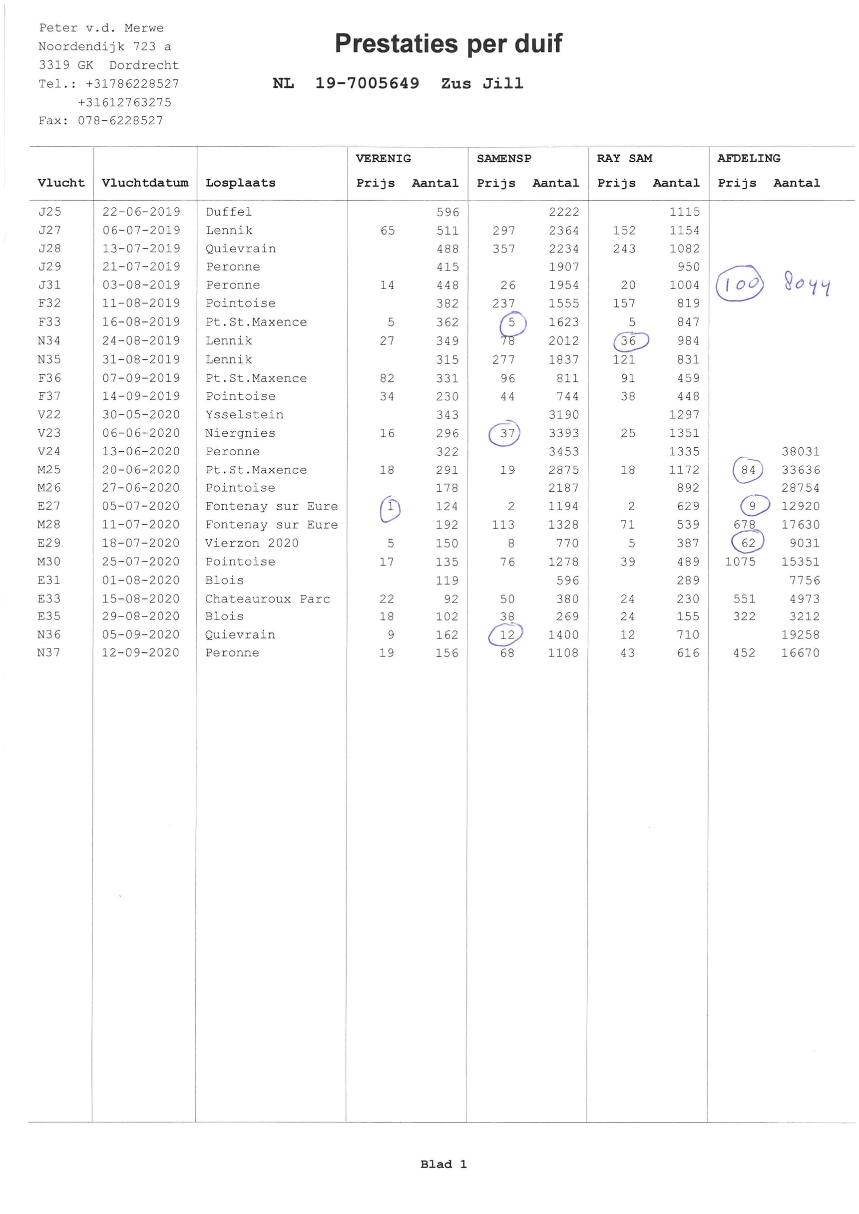 - 3 x 1st – Goovaerts Jozef ) x “Gastons Princes”