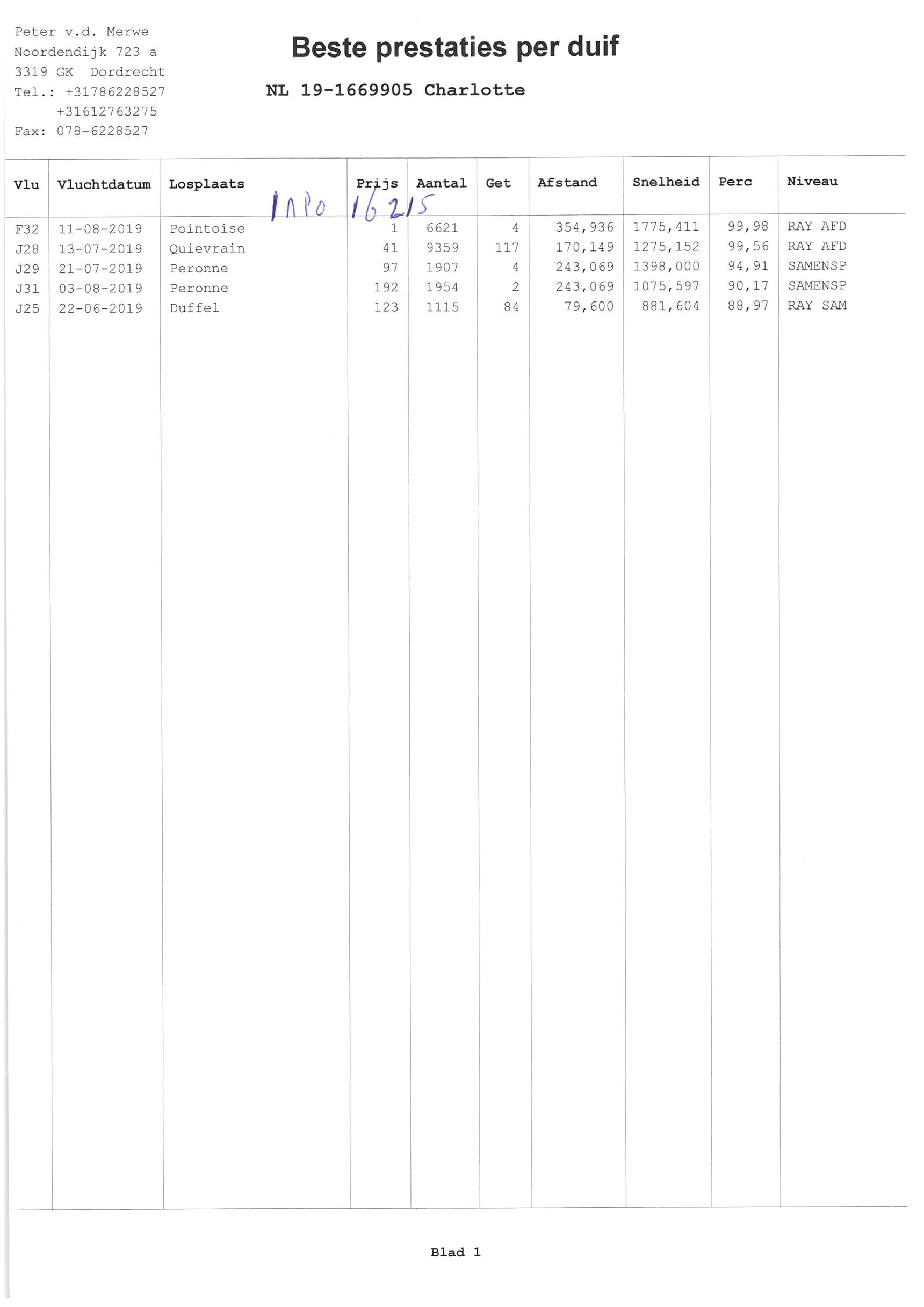 Father: “B16-2010750” – 100% Gaston Van de Wouwer