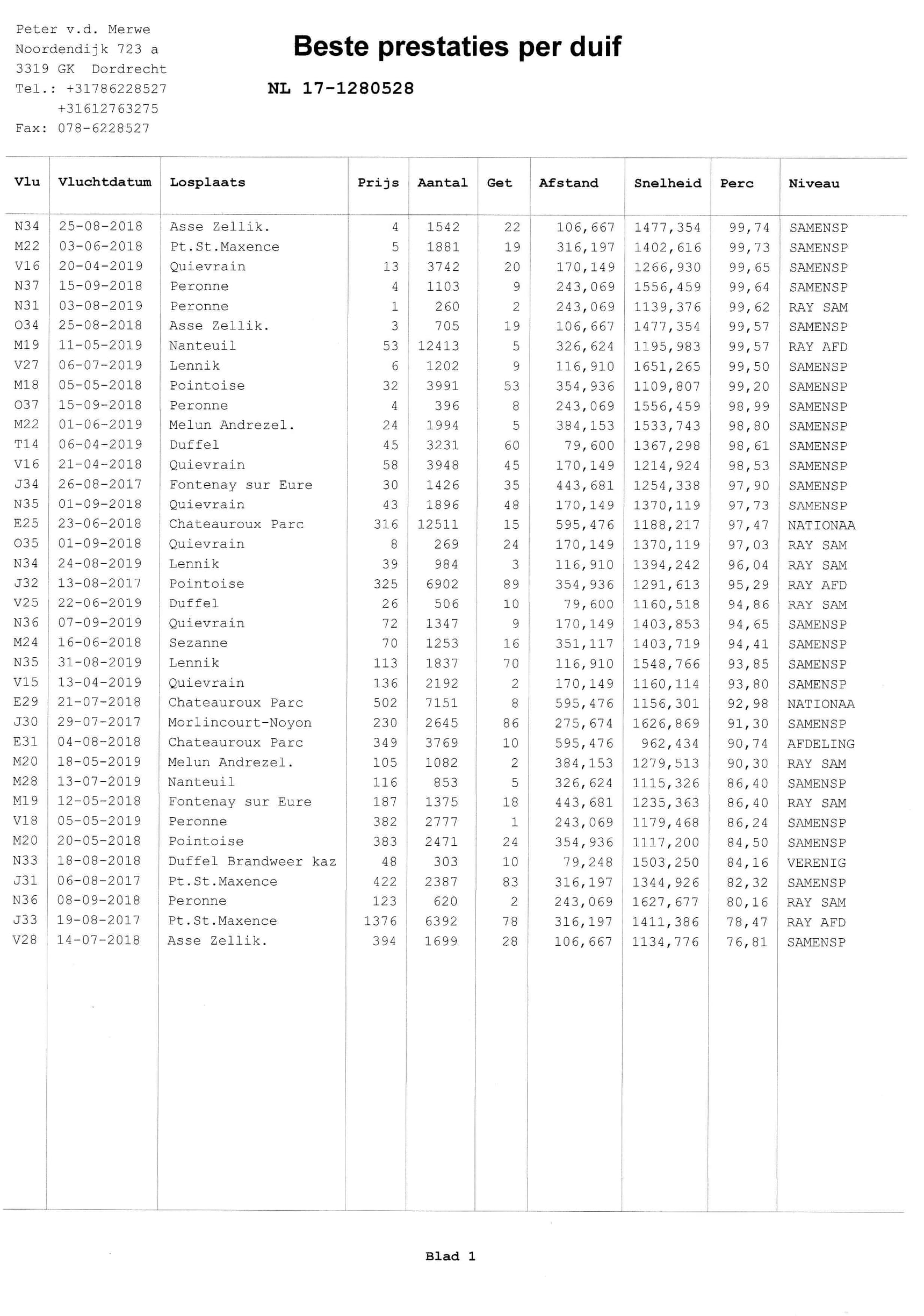 WON: 1st PERONNE 260b. - 4th ASSE 1,542b. - 4th PERONNE 1,103b. - 5th PONT 1,881b. - 6th LENNIK 1,202b. - 13th QUIEVRAIN 3,742b. - 30th FONTENAY 1,426b. - 32nd PONTOISE 3,991b. - 43rd QUIEVRAIN 1,896b. - 53rd NANTEUIL 12,413b. - IS A FULL SISTER OF 1st CHIMAY 2,948b. – fastest 8,645b. - IS A FULL SISTER OF 2nd NPO PONTOISE 19,072b. - IS A FULL SISTER OF 3rd NPO PONT 12,750b. - IS A FULL SISTER OF 5th NPO PONT 19,072b.