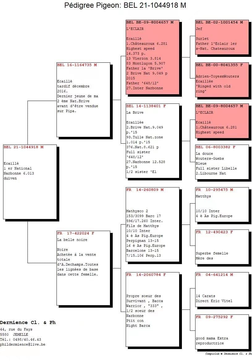 De duiven vlogen voor Agen voor snelheid, meerdere keren halve fond en Nevers. Op Narbonne werden ze dan ingekorfd op 10 dagen broeden en nu de laatste vlucht zullen er nog duiven meegaan die dan op einde broeden zullen zitten.