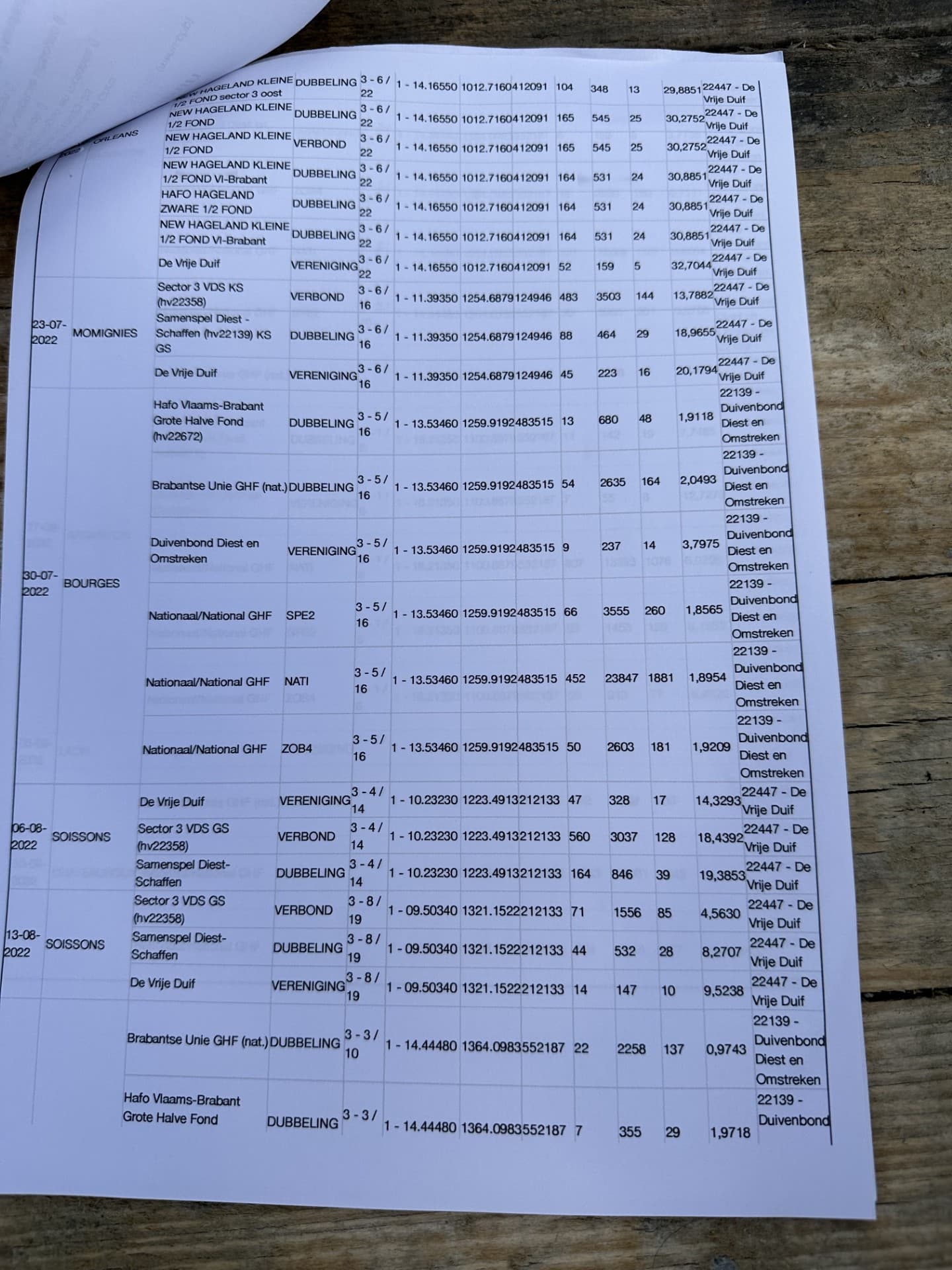 Nationaal Bourges kende een mooi deelnemersveld want naast de 20.328 jonge duiven werden er ook 9.922 oude en jaarse duiven ingekorfd. Snelste van alle werd “Louise” (B22-2088887) van familie Timmermans-Poels uit Schaffen. Chris Timmermans en Vanessa Poels zijn aan een heel sterk seizoen bezig. De forme fee huist duidelijk op de hokken want het aantal overwinningen leunt al zeer dicht bij de 30 aan en - belangrijk te weten - dit met een team van 10 jaarse duivinnen en kleine 90 jonge duiven. Met oude/jaarse duivers wordt er niet gespeeld.