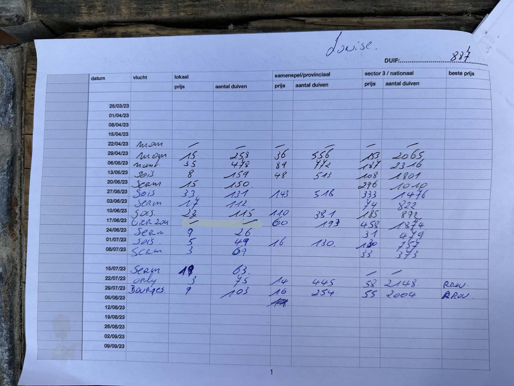 De vliegduivinnen werden half februari gekoppeld en mochten een nestje groot brengen. Vooraleer ze opnieuw legden zaten ze op weduwschap. Tijdens het weduwschap zitten ze overdag in de aanpalende volière en worden ze ’s avonds opgesloten in hun woonbak. De duivinnen trainen enkel ’s morgens en worden ook maar 1 maal gevoederd. Ik gebruik de mengelingen van Natural, Anthoons en Mariman en net zoals bij velen wordt er opgevoederd naar de inkorving toe.