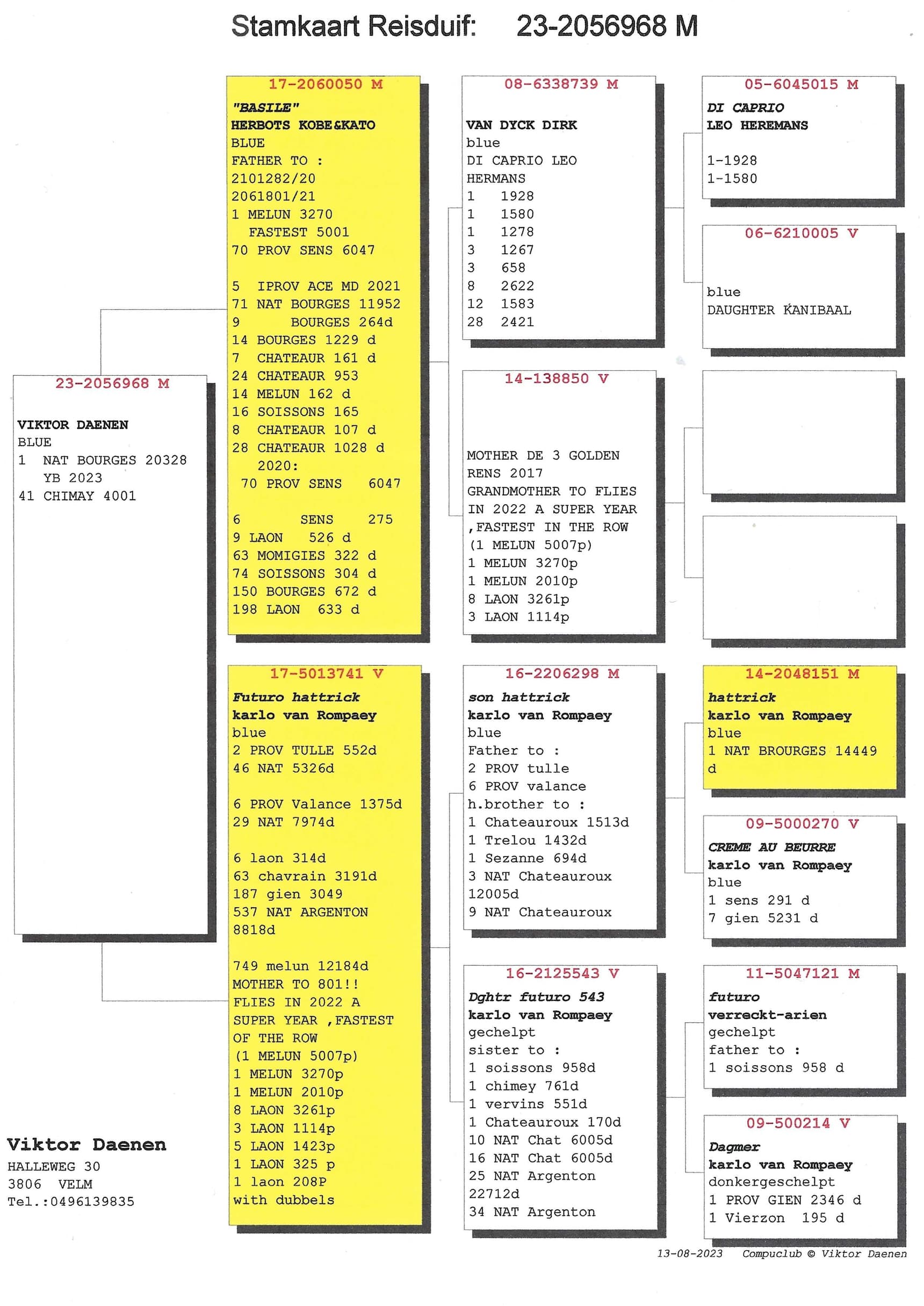 Viktor vertelt: “Raf Herbots is onze dierenarts. Hij staat in voor de gezondheid van onze veestapel en hij was het die me besmette met de “duivenmicrobe”. Het was 2017 en binnen de kortste keer stond er een duivenhok in de buurt van de stallen. De eerste duiven kwamen van bij Raf en werden dan aangevuld met duiven van Herbots Gebroeders, Joseph Reynaerts, Danny & Bjorn Knaepen, Frank Neven en Kumpen-Schepers. Ook werd er bij Van Rompaey Karlo 1 duif uit de lijn van “Hatrick”, bijgehaald.