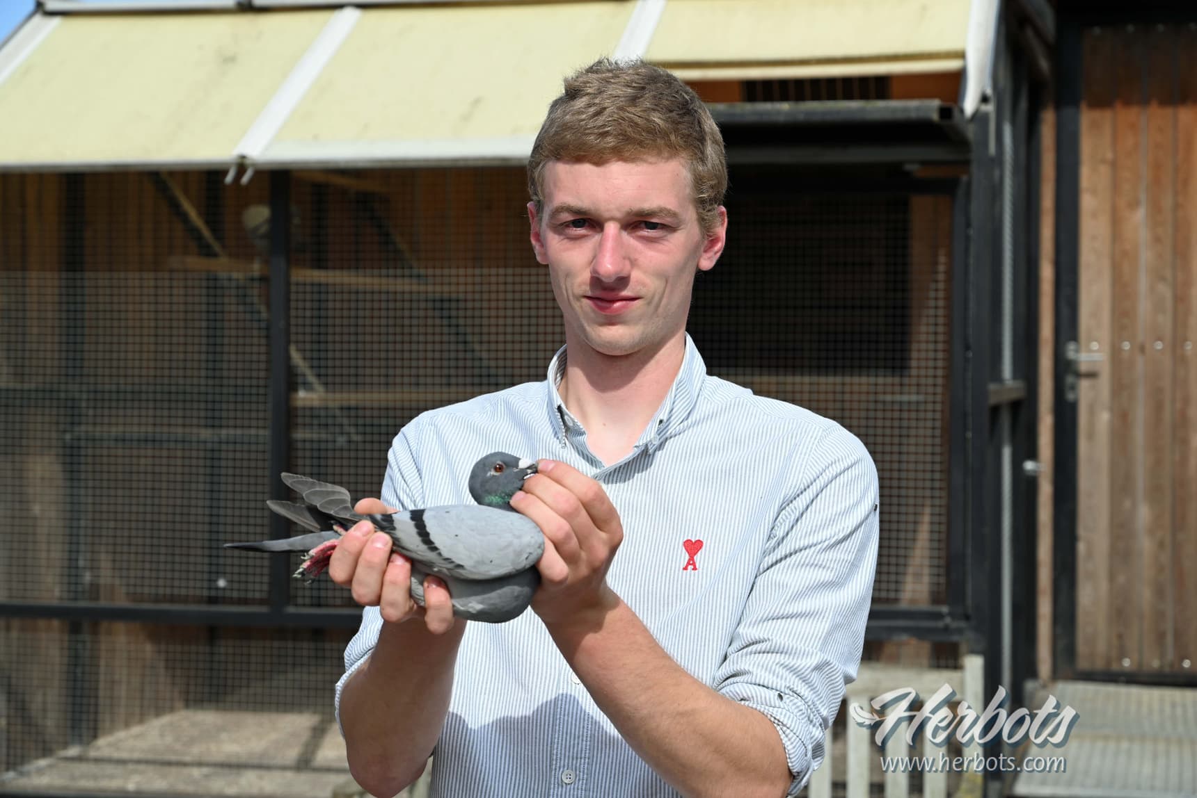 Om de winnaar van deze editie te gaan bezoeken dienden we naar de Halleweg nr. 30 te rijden. Daar in een indrukwekkende vierkant hoeve woont Viktor Daenen (22 lentes jong) samen met zijn ouders. Heel de familie staat in voor het vetmesten van wel 1.000 runderen. Hiermee een van de grootste vetmesterijen van België. Viktor heeft tot en met 1 Juli ‘23 gedurende een goed jaar deel uitgemaakt van het Herbotsteam. Te Halle-Booienhoven stond hij mee in voor de verzorging van de zogenaamde “commercie duiven”. Een pracht job in een top team maar de combinatie met het vele werk op de boerderij was niet houdbaar. Er diende keuzes gemaakt te worden.