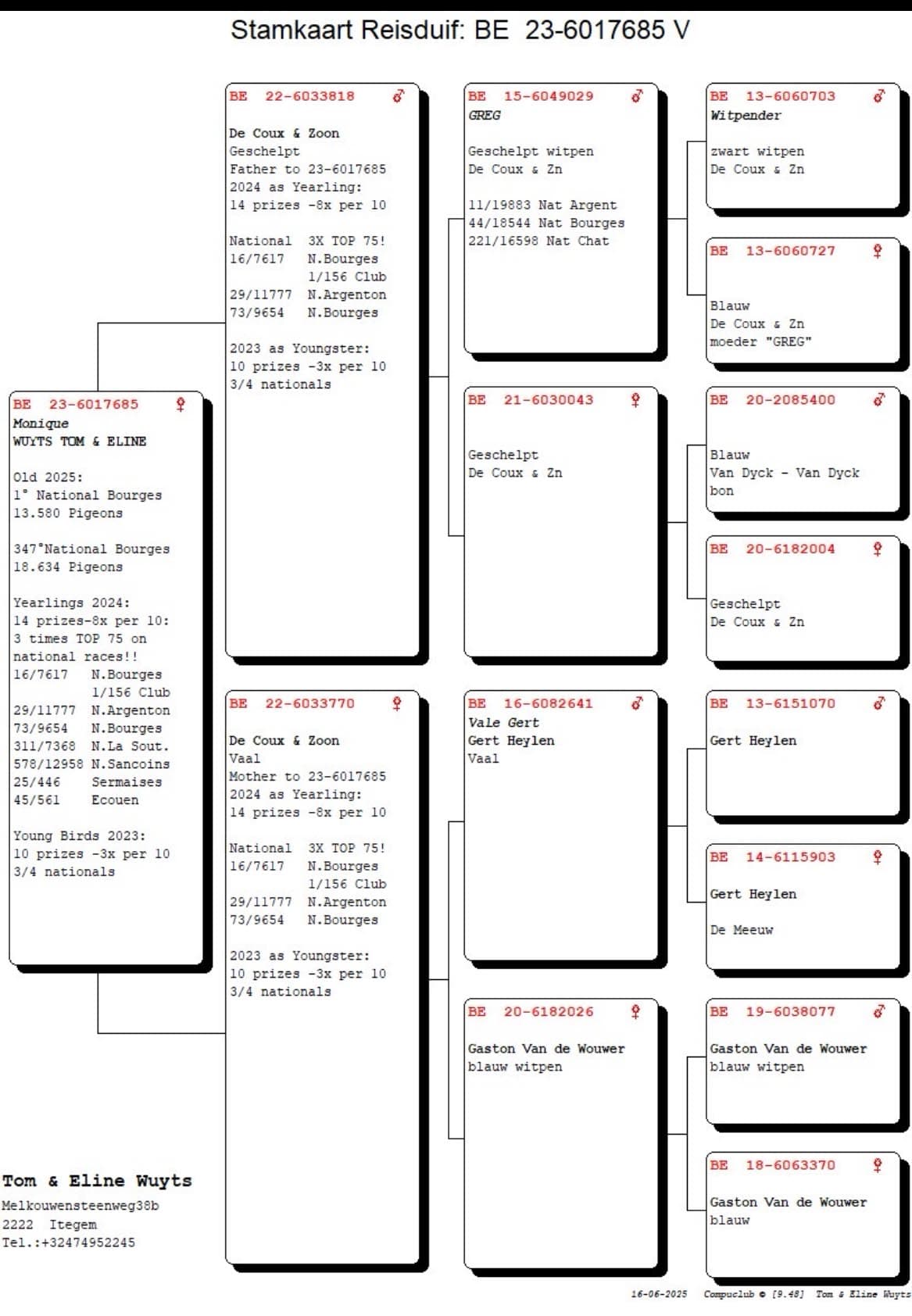 “Monique” B23-6017685 is een echte klasseduivin. Als jaarse toonde ze haar kunnen met