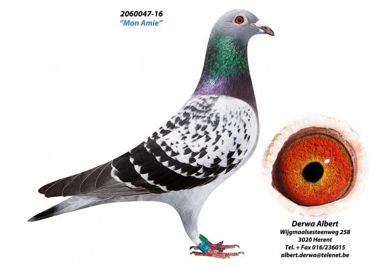 除了胡曼斯鸽和明德豪鸽获得了超级翔绩,我们来看一下其它例子,如“朋友Mon Ami” BE16-2060047。