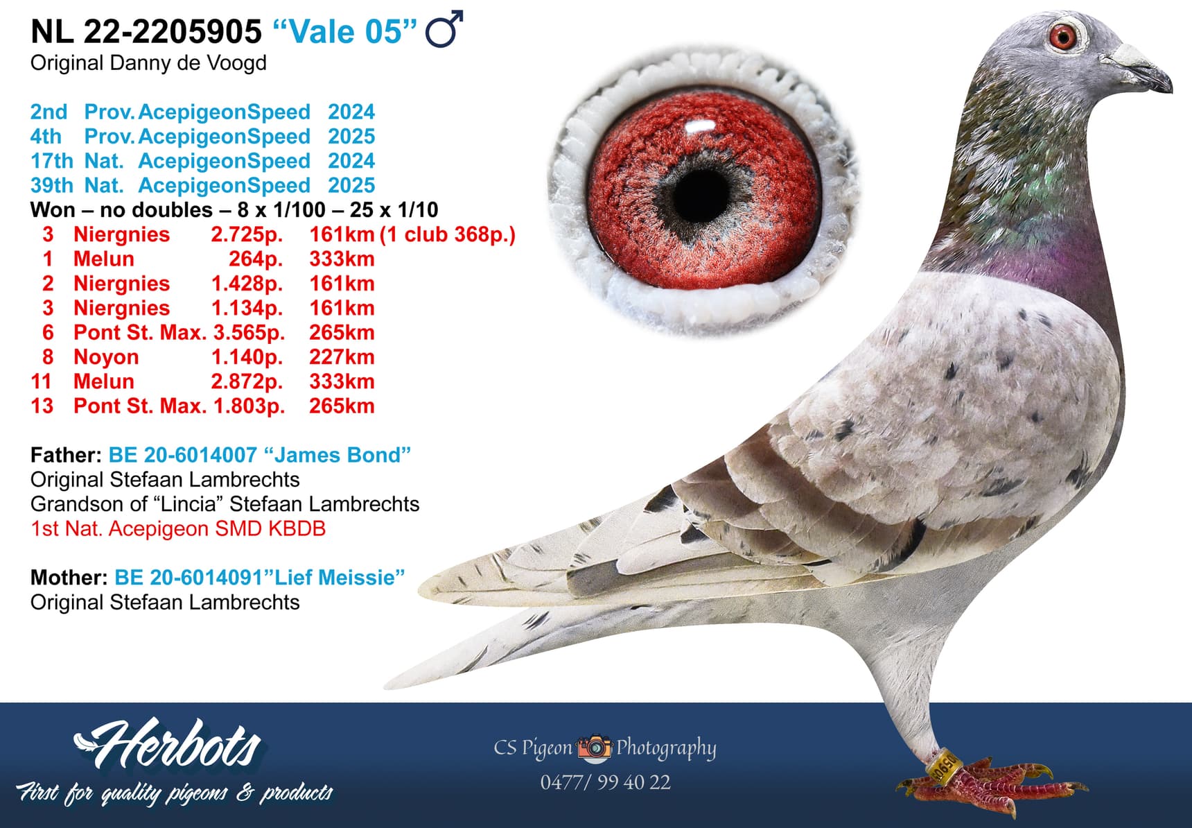 NL 24-2407410 “Fleur” Granddaughter “Redbull”:4th Nat. Acepigeon Speed 2025 - 1st Prov. Acepigeon Speed 2025