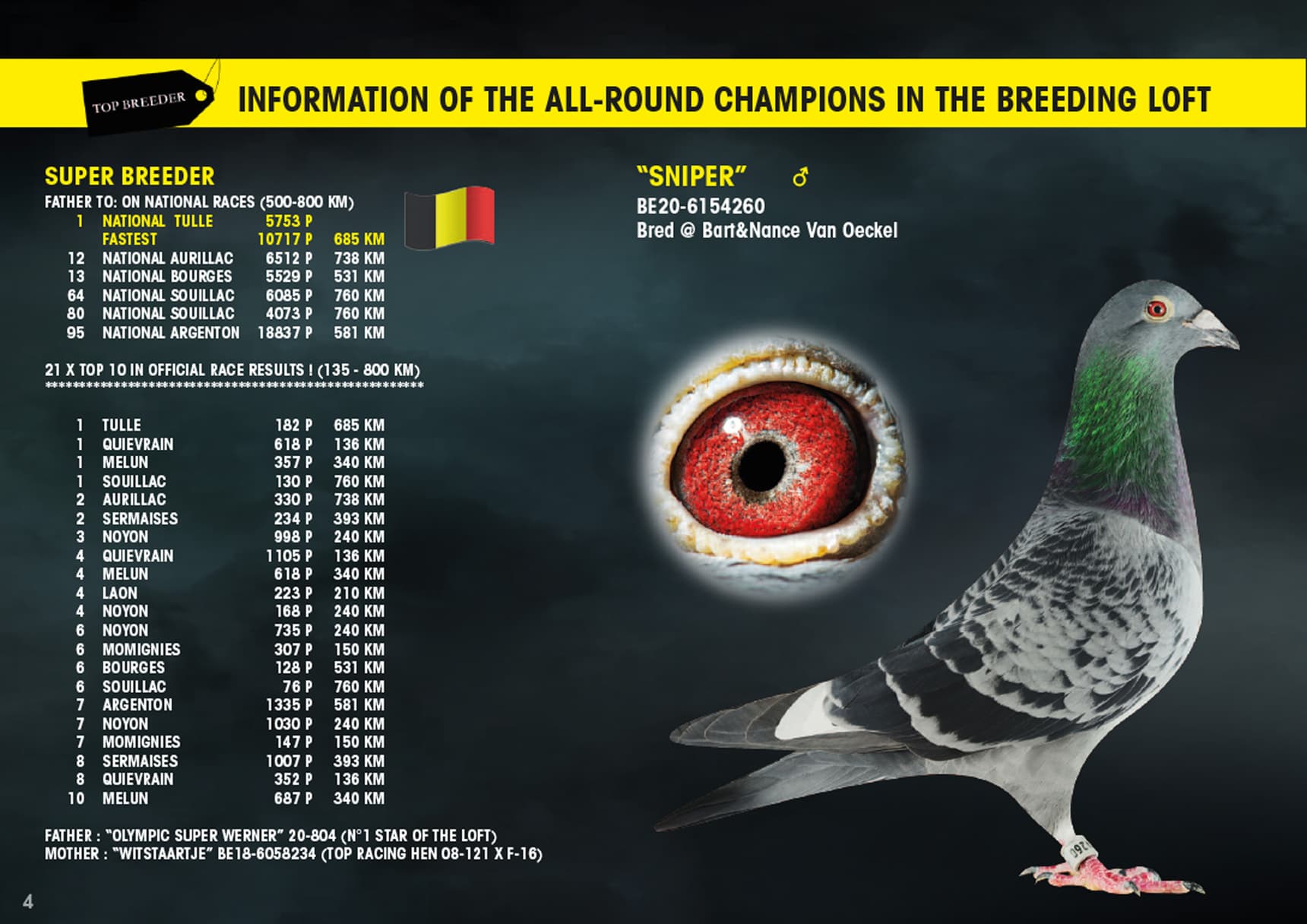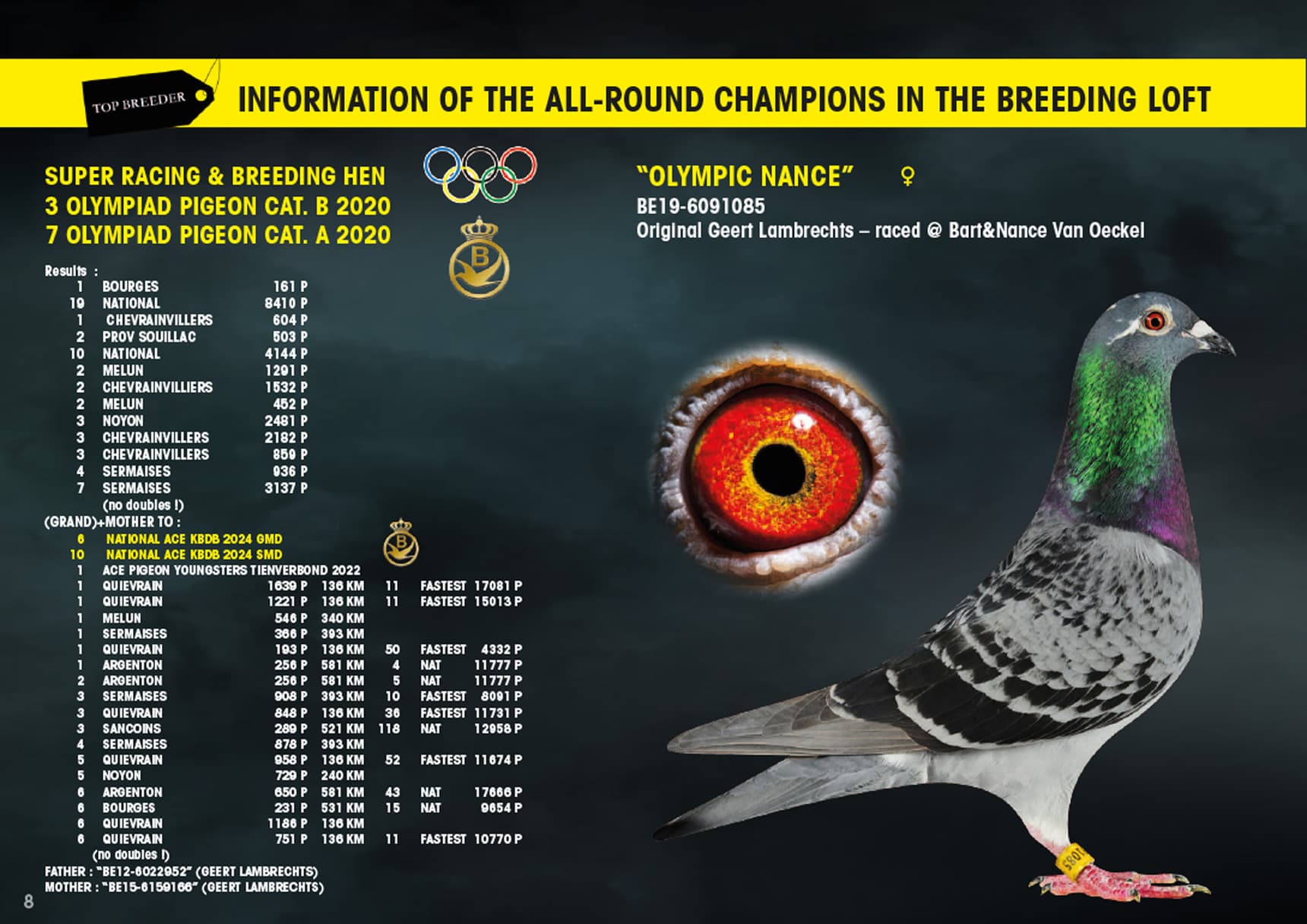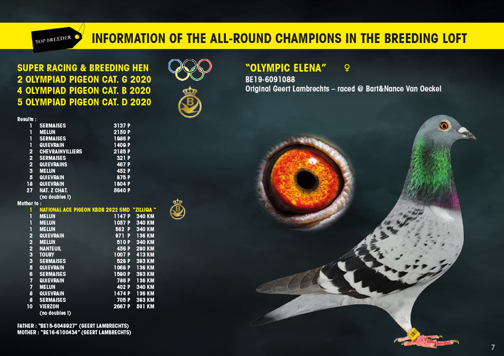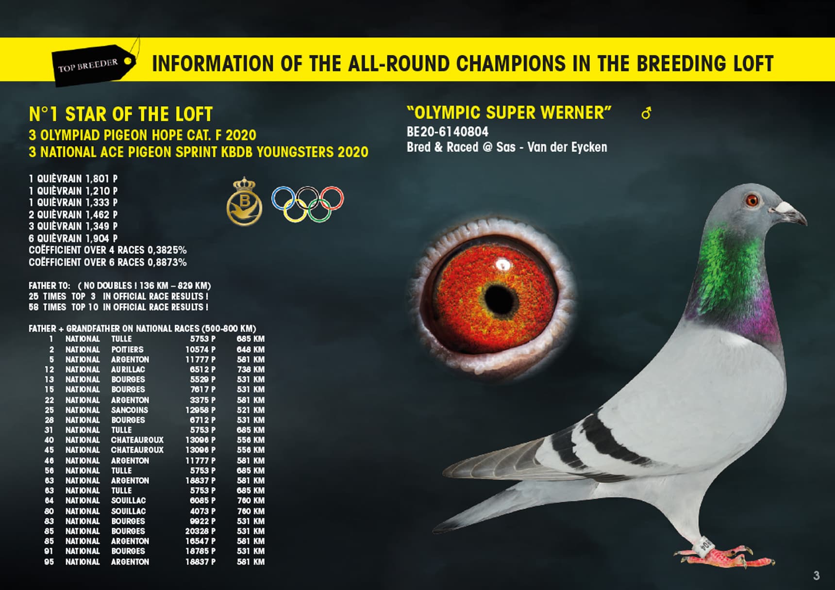 In 2020, B20/6140804 "Olympic Super Werner" was bought from friends Linda and Werner Sas, Vosselaar. "Olympic Super Werner" became 3rd Nat. ace KBDB Speed youngsters 2020 and 3rd Olympic Hope Cat. F 2020.