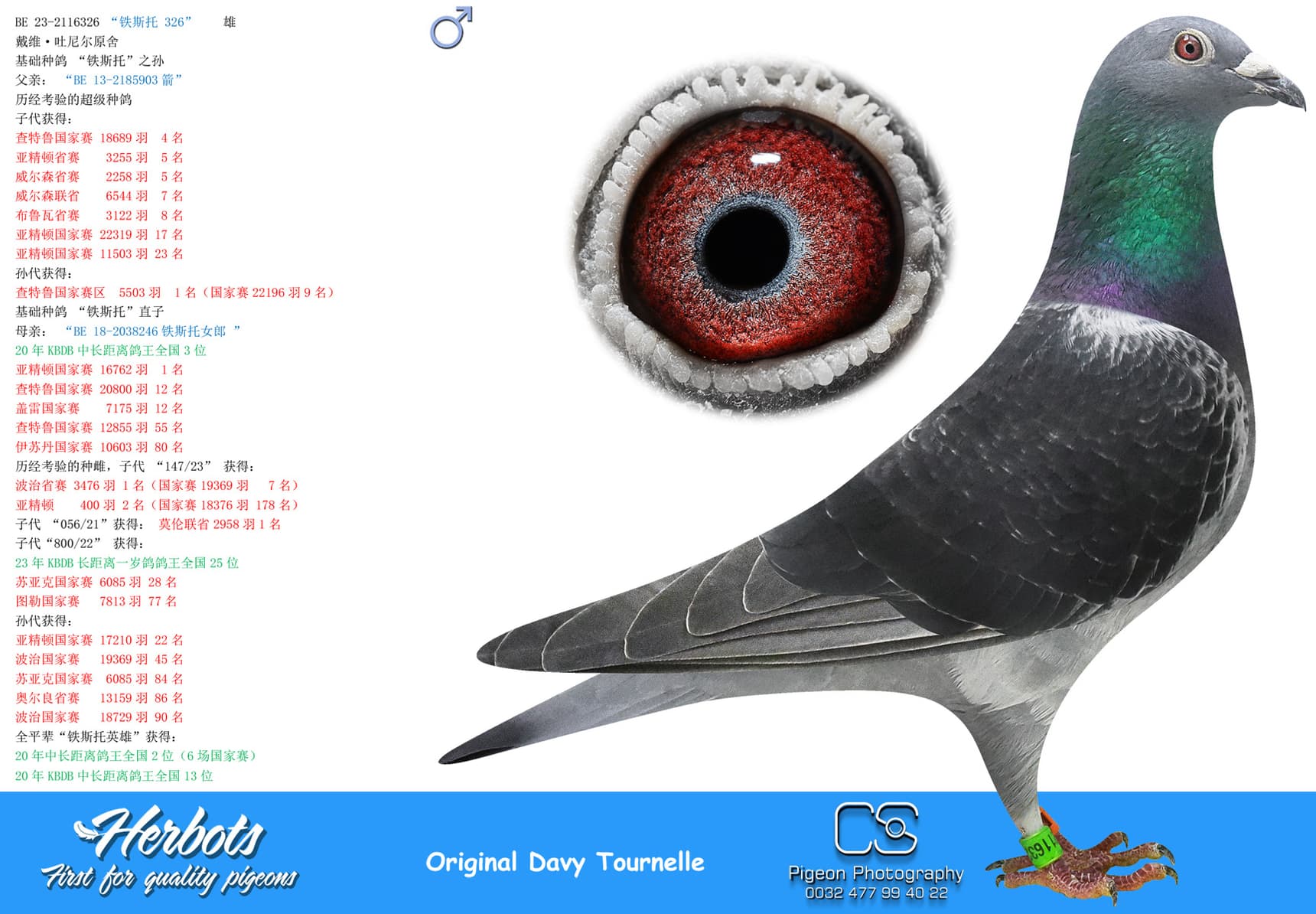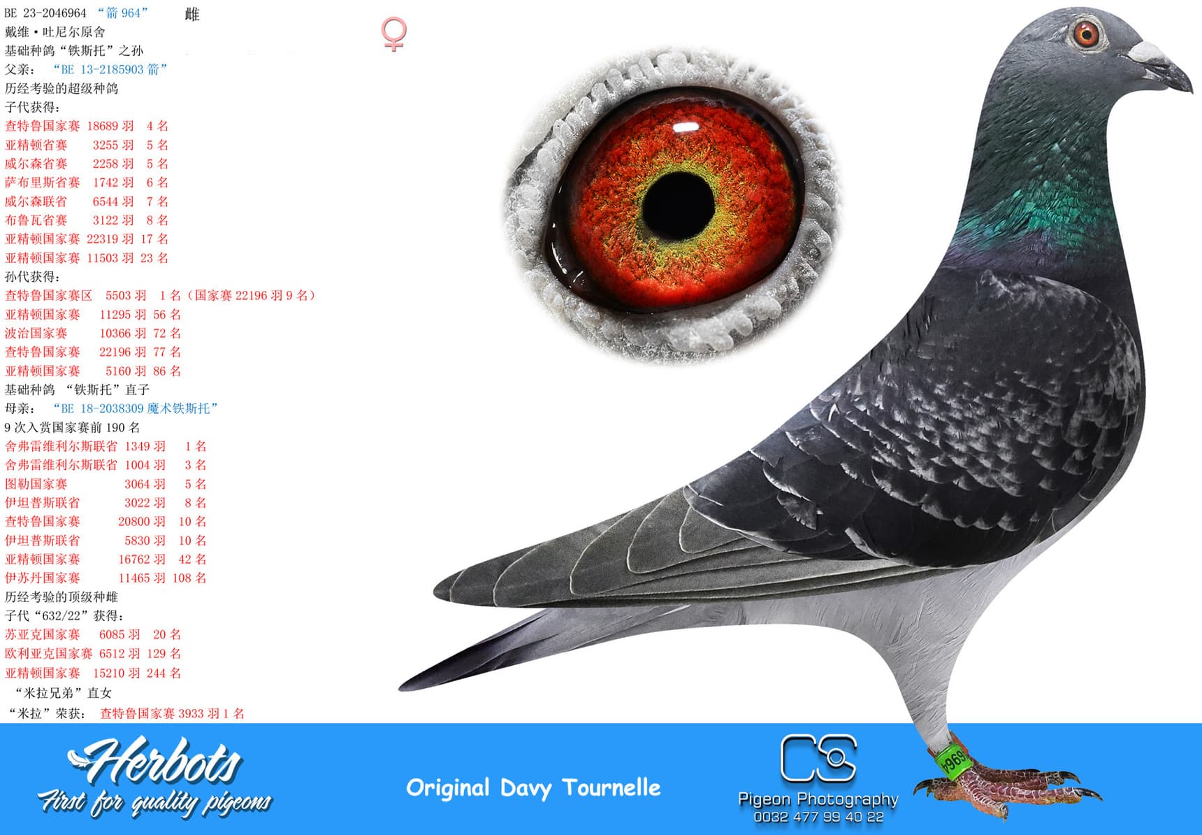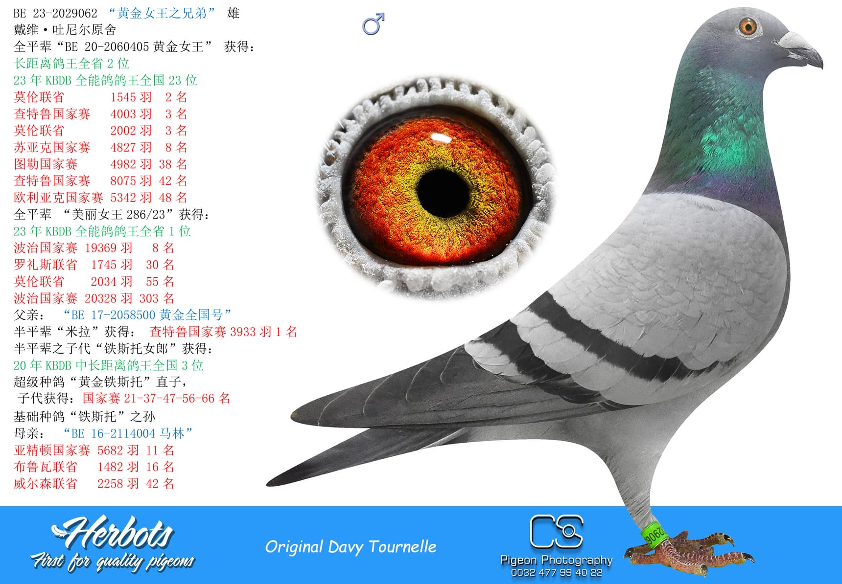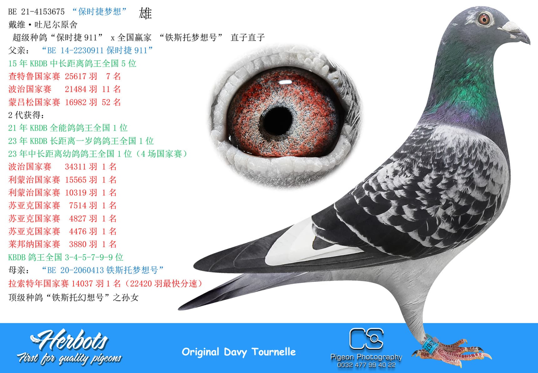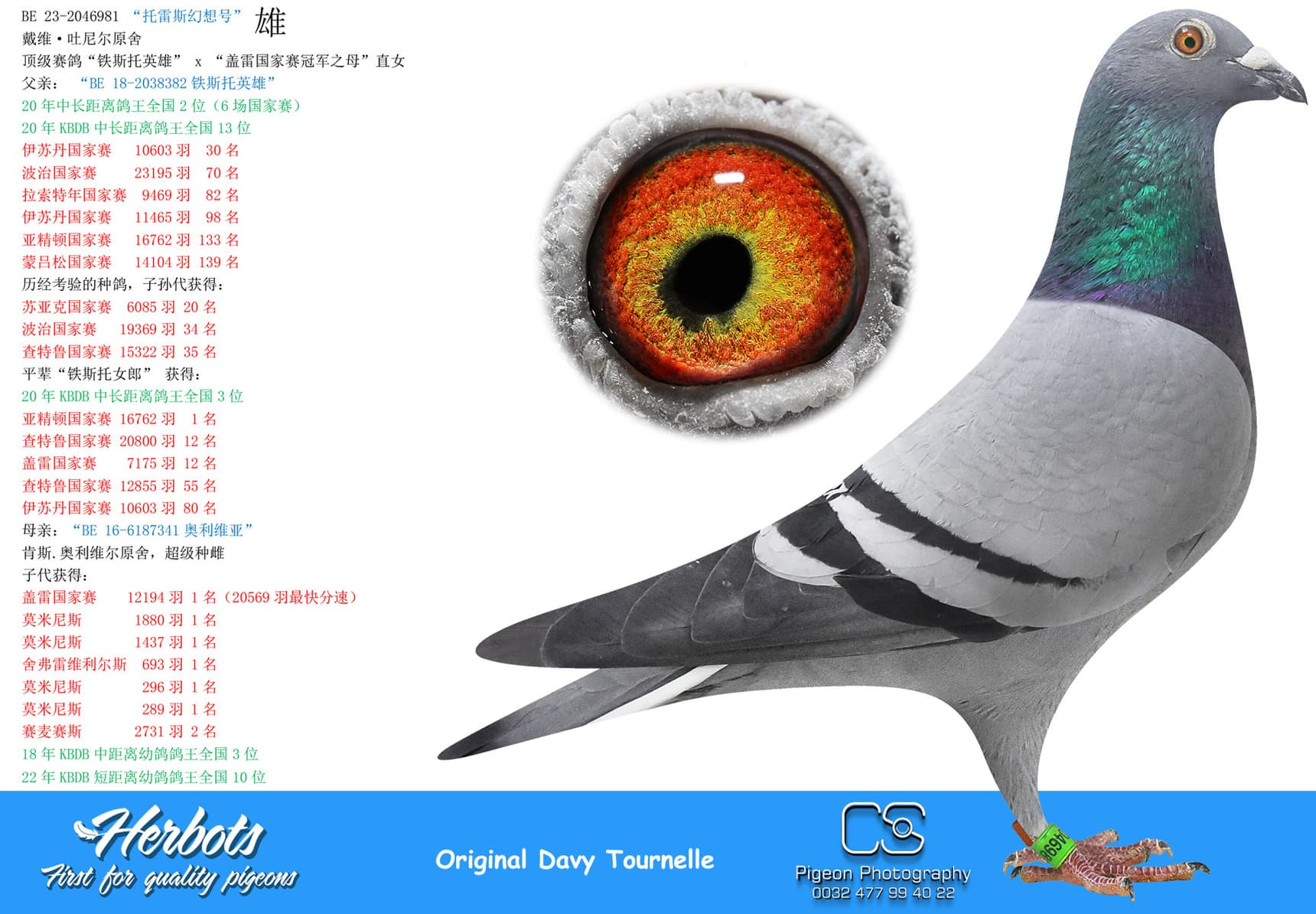BE 17-2058221 “Miss Torres” won in her own career 1st National Issoudun 8,248p – 3rd National Argenton 8,588p – 2 I.Prov.Chevrain 3,118p – 2 Prov Blois 2,953p – 9 I.Prov.Etampes 5,830p – 17 Nat Chateauroux 4,641p – 74 Nat Argenton 15,235p