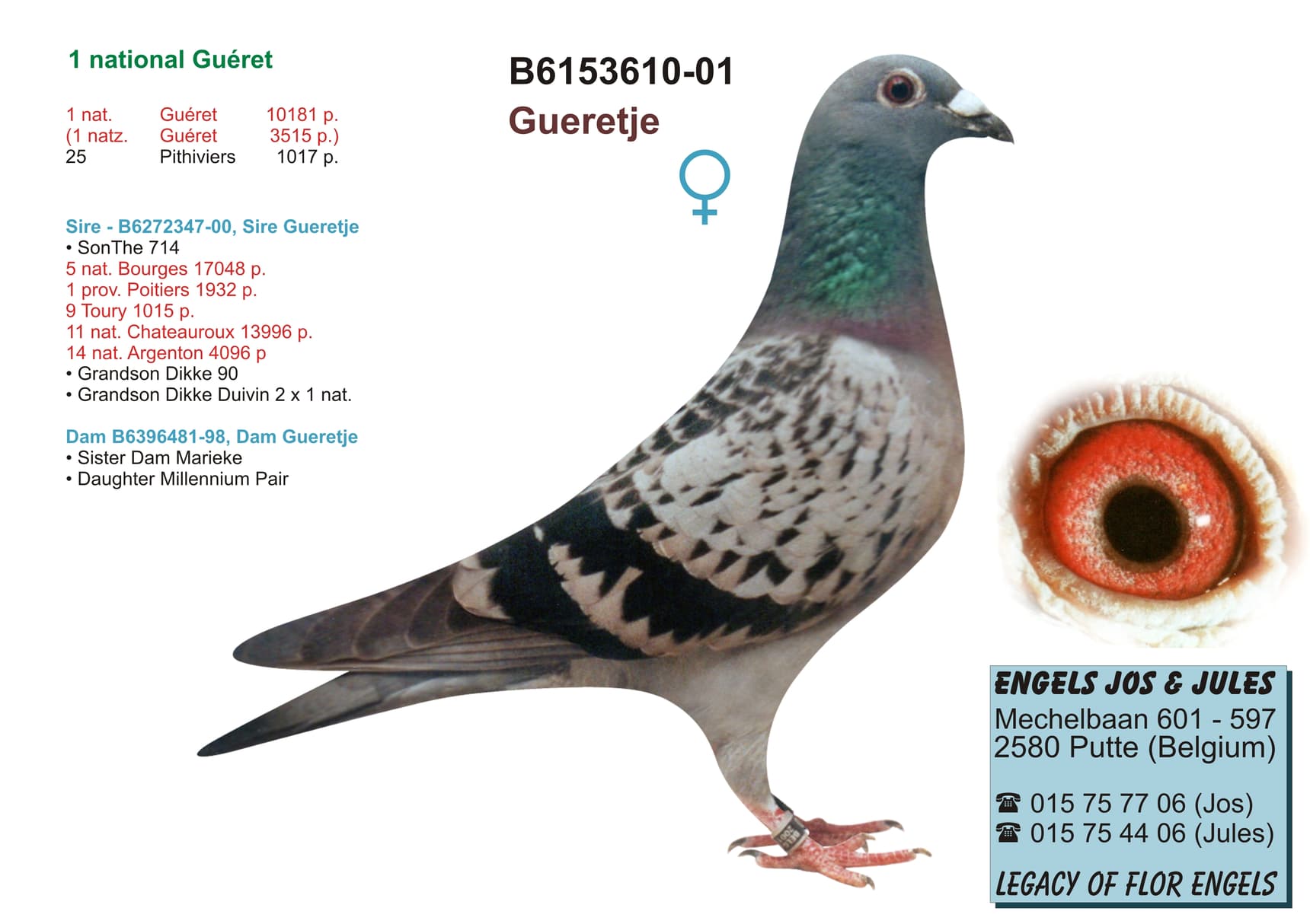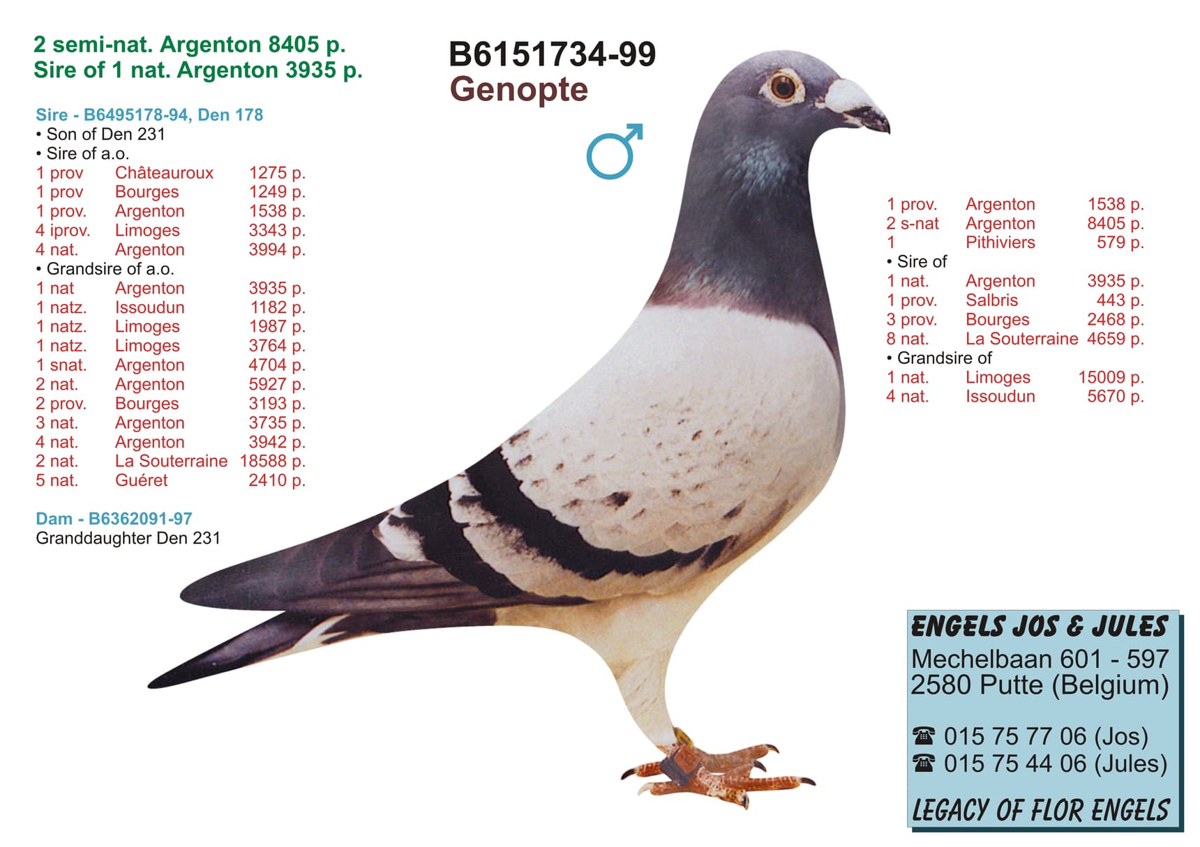 * The super breeder from Wim De Troy is a direct Engels, a grandson of ‘Dikke 90’ ( 1 semi-nat. Chateauroux). Children and grandchildren raced ao.