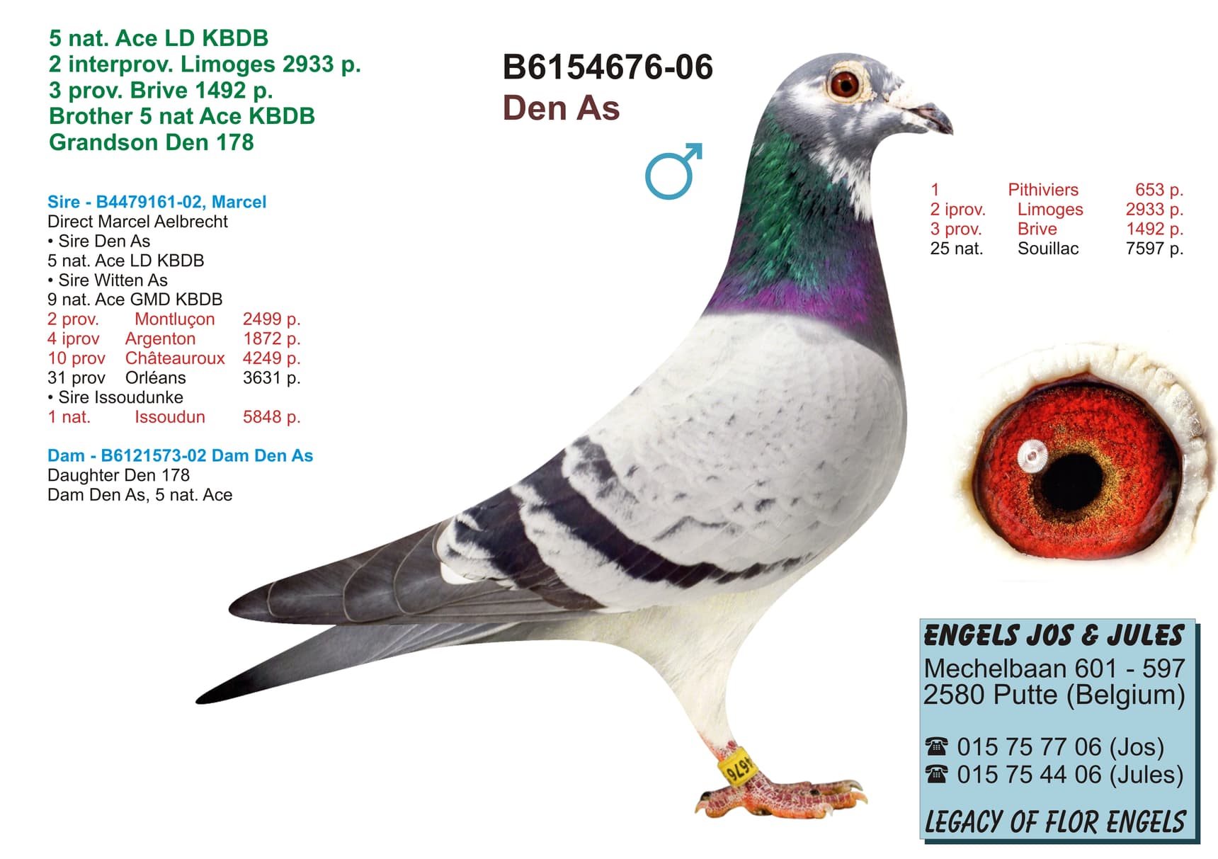 Jos and Jules Engels are specialized in the middle distance races and even more in the Greater Middle Distance, so let’s say the national from Bourges, Argenton, Guéret, Chateauroux and so on. But they do have ‘a thing’ with the race out of Limoges. It is a long distance race, but their pigeons are surely up for it. This is how they already won in 2010 the 1 National Z Limoges against 3,764b with their 6110276-07, a grandson from the ‘178’, which has been called ‘De Limoges’, to make it easy.