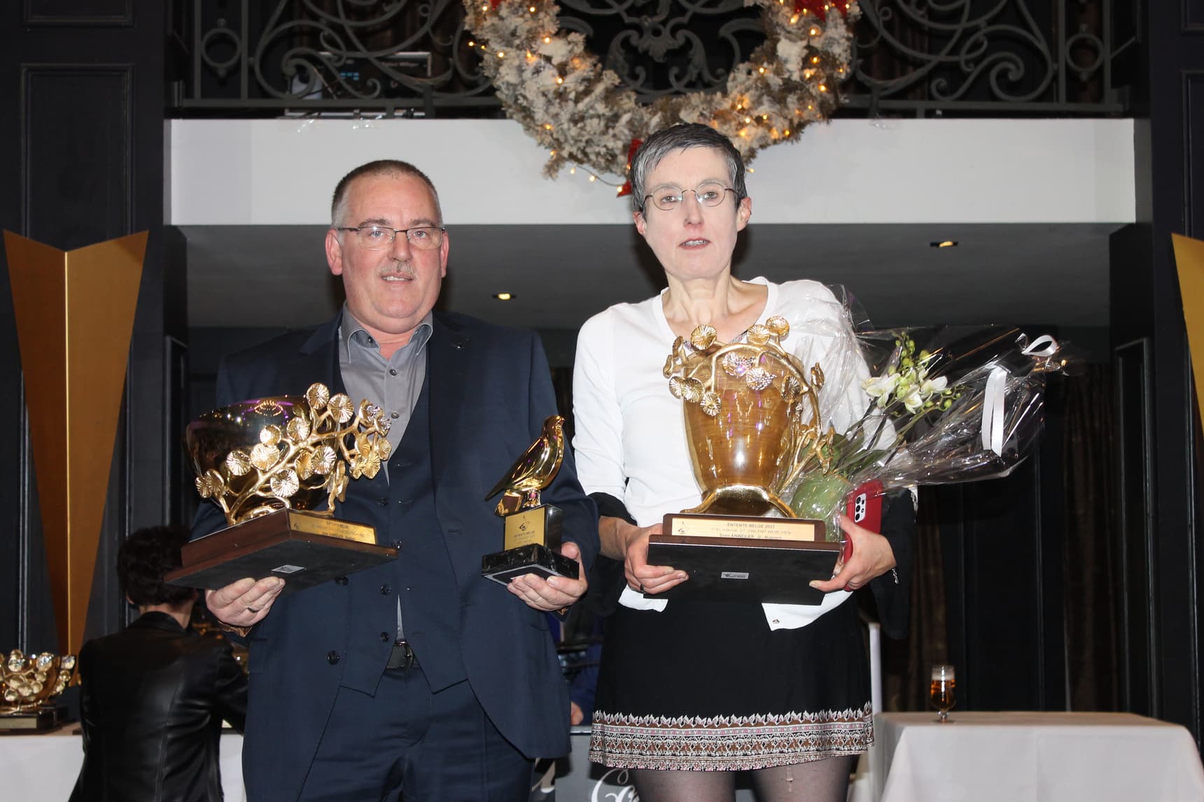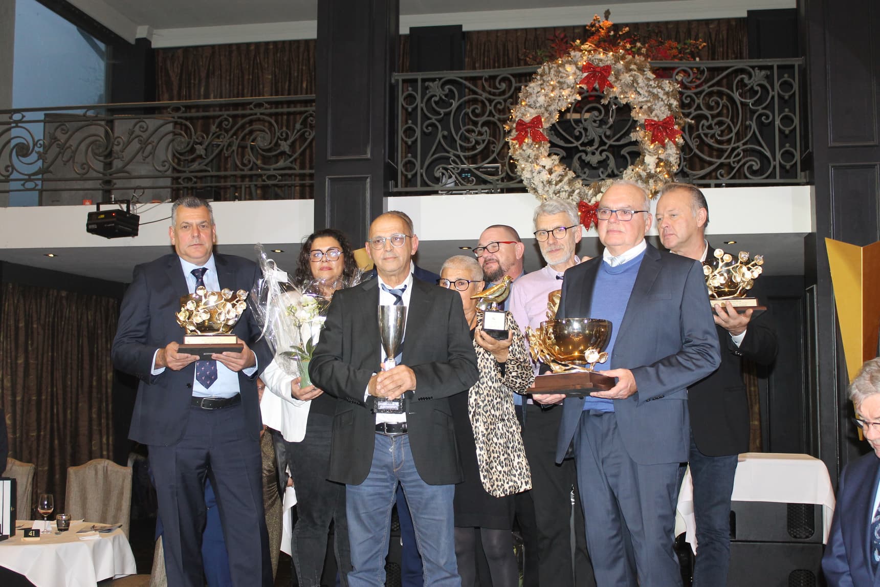 It was another full house in the Salons Cortina is Wevelgem, where on Sunday 10 December the Belgian Relief Society celebrated its annual high point of the past season. With as many as 370 people in attendance, this organisation is "alive and kicking" after some difficult years resulting from the corona pandemic. The hall was packed and those present were very nicely settled within their circle of friends and acquaintances and their fellow players from their club, region. International interest in this event remains strong. France, Germany, Luxembourg, England, the Netherlands...all were represented at this beautiful gathering of a lot of beautiful people from pigeon circles. Winning these rankings or being classified is still a resounding proof of talent, class, commitment and a big heart for pigeon racing. Over the years, the laureates in the rankings are all true top players who put their heart and soul into their beloved hobby. Chairman Filip Norman, in his well-known straightforward style and with a big heart for pigeon sport and the beautiful tradition his late father created with other icons, welcomed all present. The common thread in his speech was concern for the quality of organising a competition with the welfare of the pigeon at the forefront. Deemphatically, he did not avoid the release of St Vincent and committed himself to trying to prevent such occurrences that are sometimes very difficult to foresee, anyway