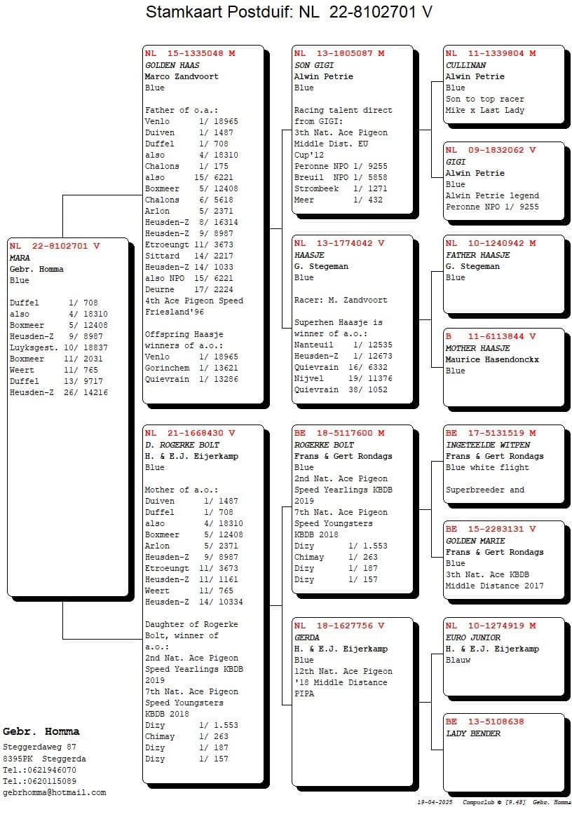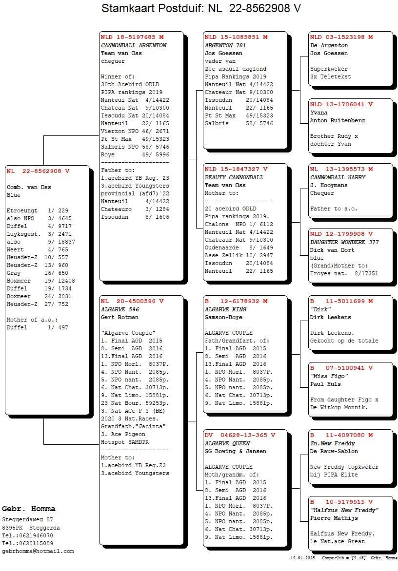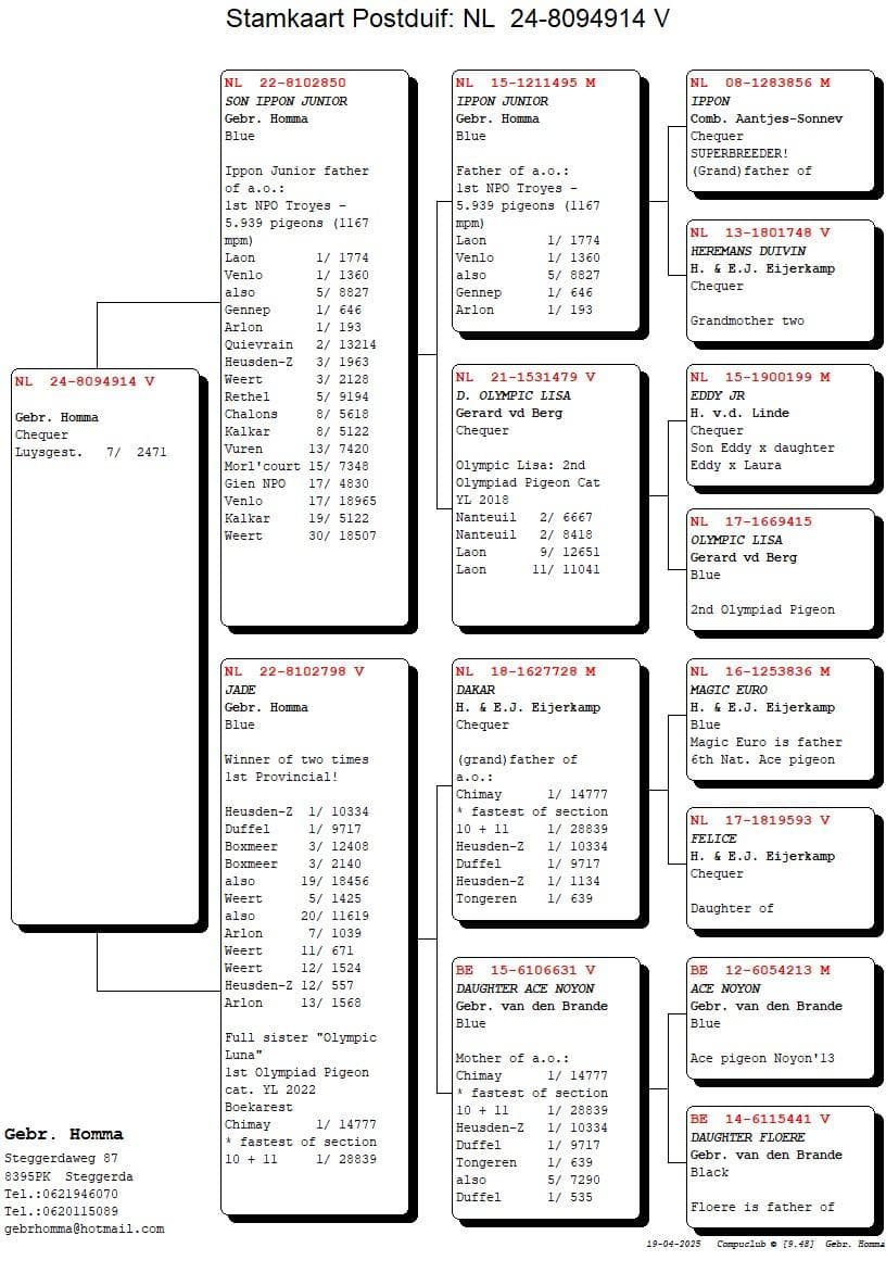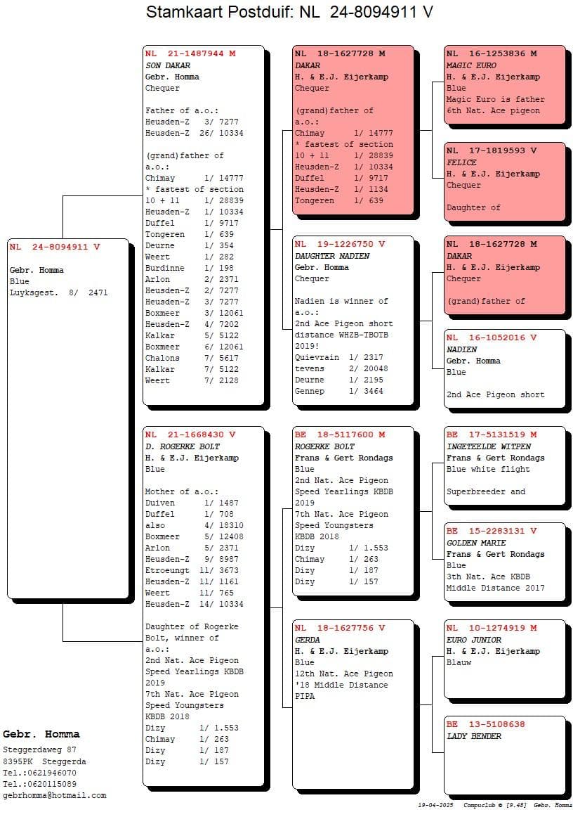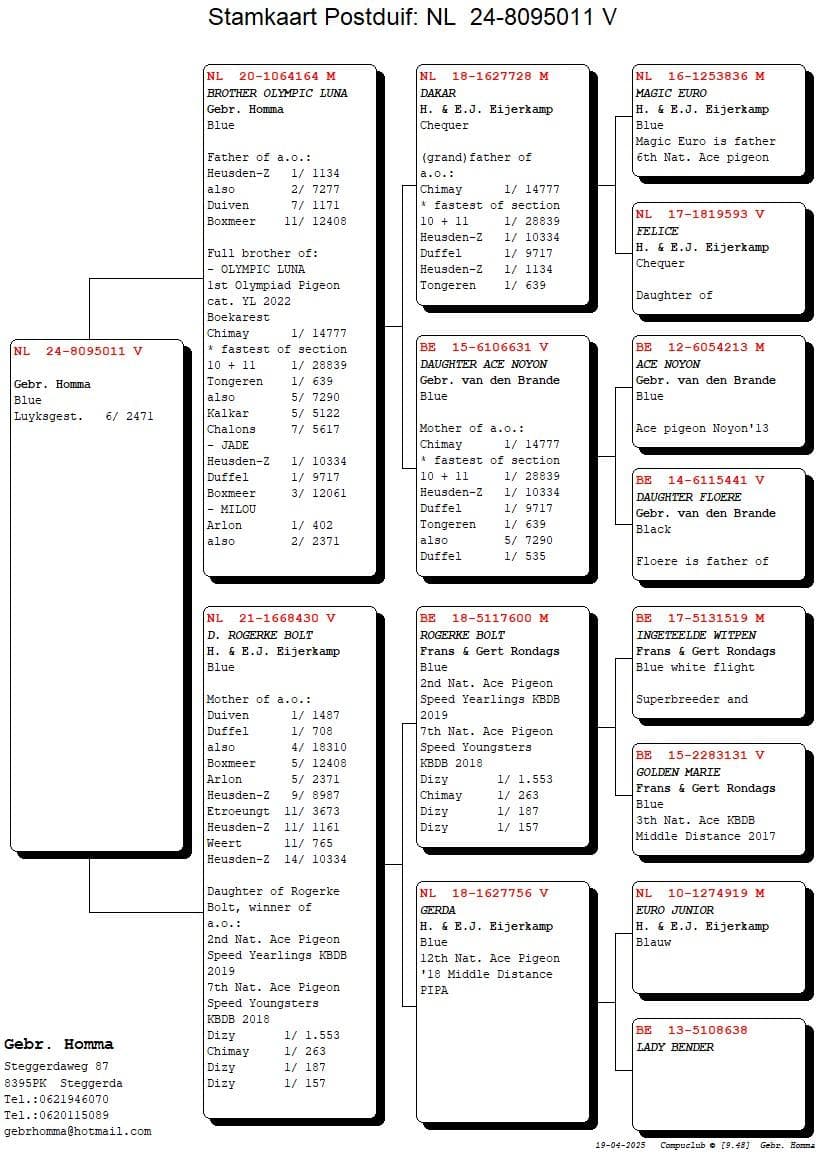 Saturday, April 19, the second flight of the new racing season was on the program for the Homma brothers and how! Under beautiful conditions and with a strong head wind, their pigeons faced a tough challenge on the flight from Luyksgestel (184 km). But the colony of Gebr. Homma immediately showed its best side with an impressive series of arrivals.