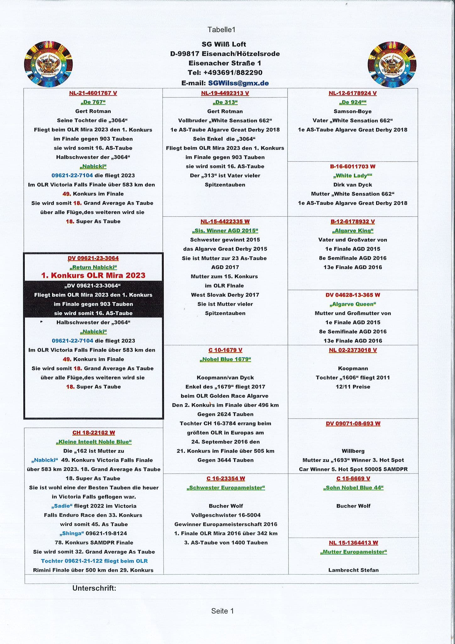 Gert is once again bringing a special auction online with brothers/sisters and children of his winners of recent years and children of his best breeders. Anyone who wants to shine on the OLR flights in the coming years will have the opportunity here. Unfortunately, there are no longer any children available from some top breeders because Gert also had to deal with a pigeon theft in the autumn of 2022 where some valuable top breeders were stolen.