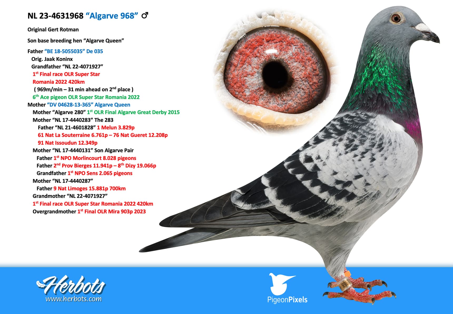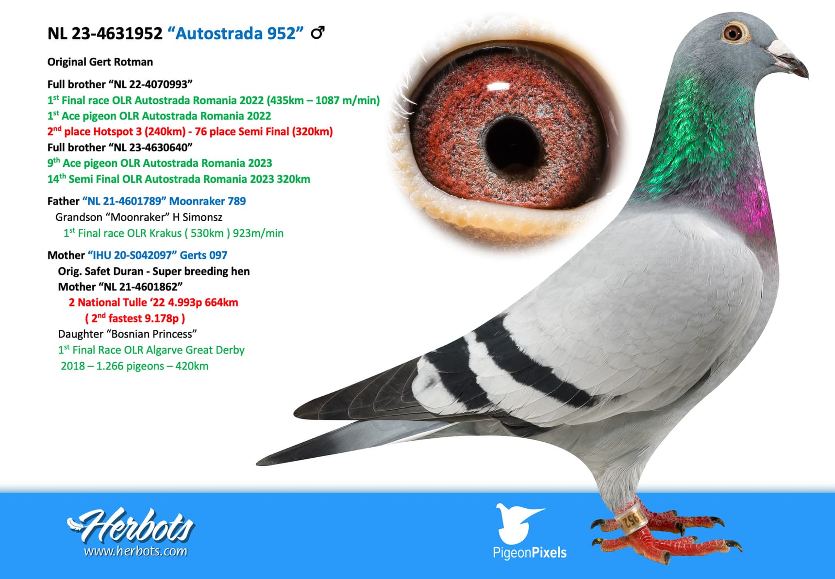 His full brother “NL 23-4630640” became 9th Ace Pigeon Ace Pigeon OLR Autostrada Romania 2023 and 14th in the semi-final OLR Autostrada Romania 2023