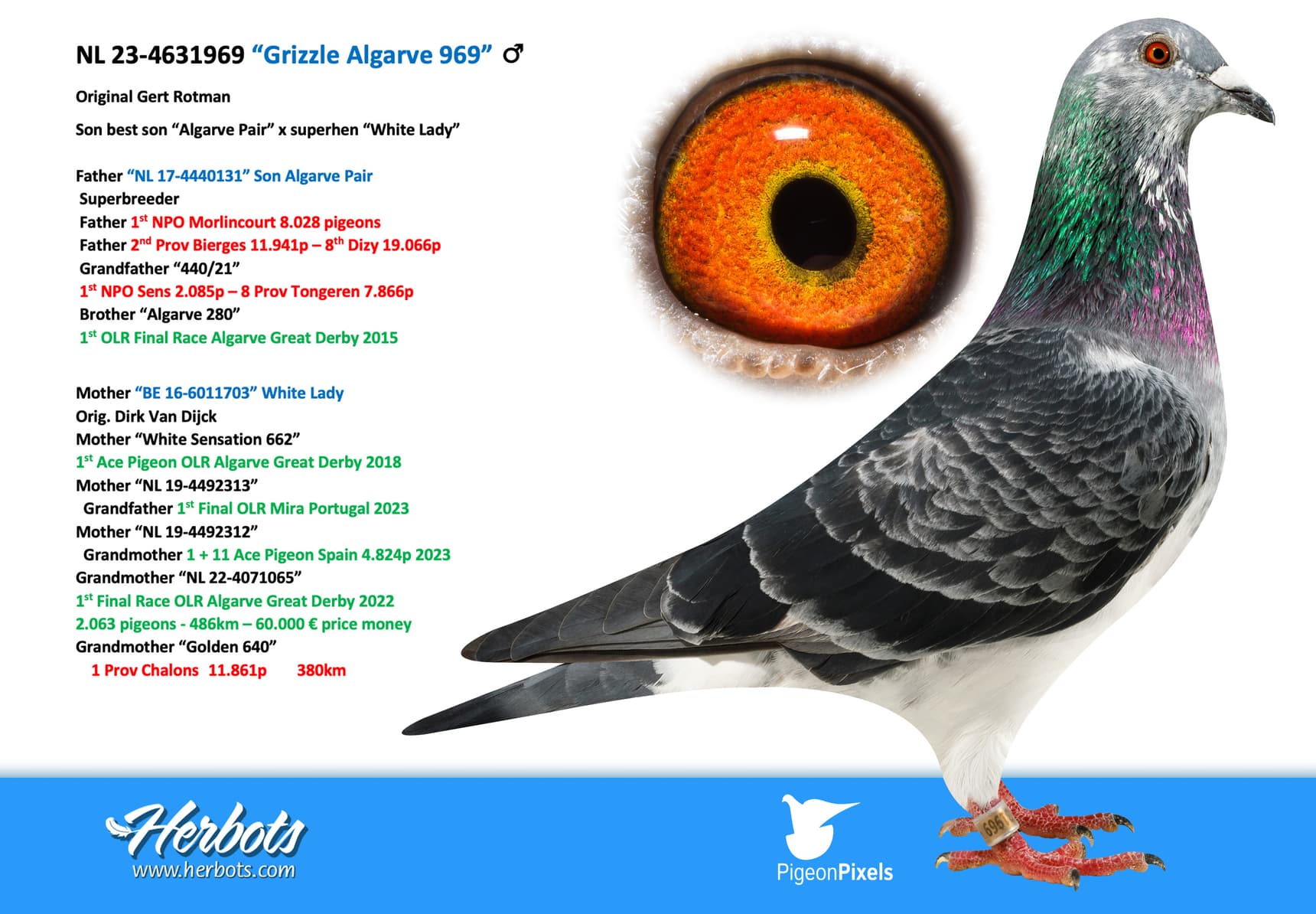 Mother is a full sister of “Jacinta”“Jacinta” won 3rd International Ace Pigeon Hotspots SAMDPRShe won 3rd / 2,071p – 27th / 2,334p – 31st / 2,216p – 52nd Final 1,548 pigeons