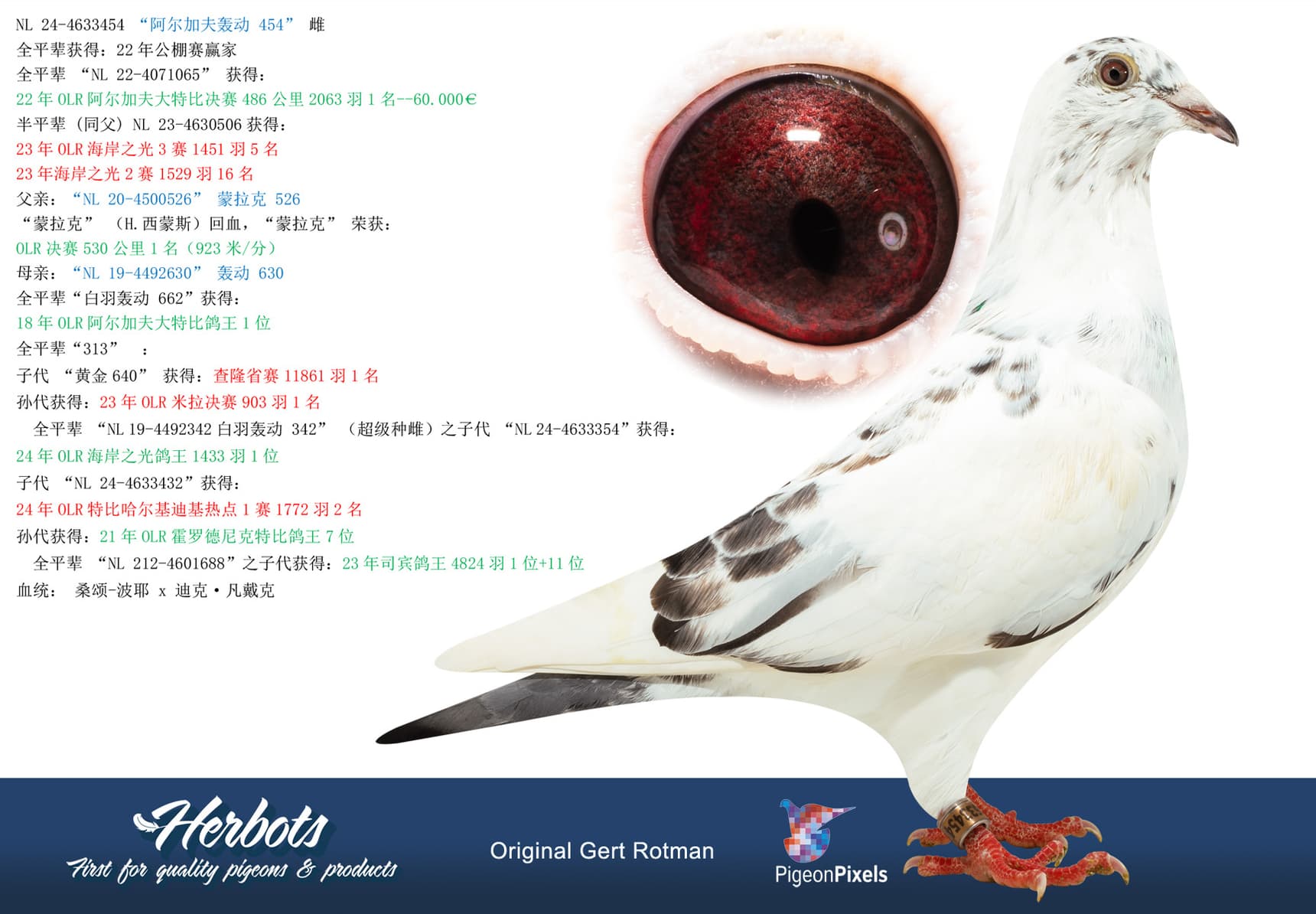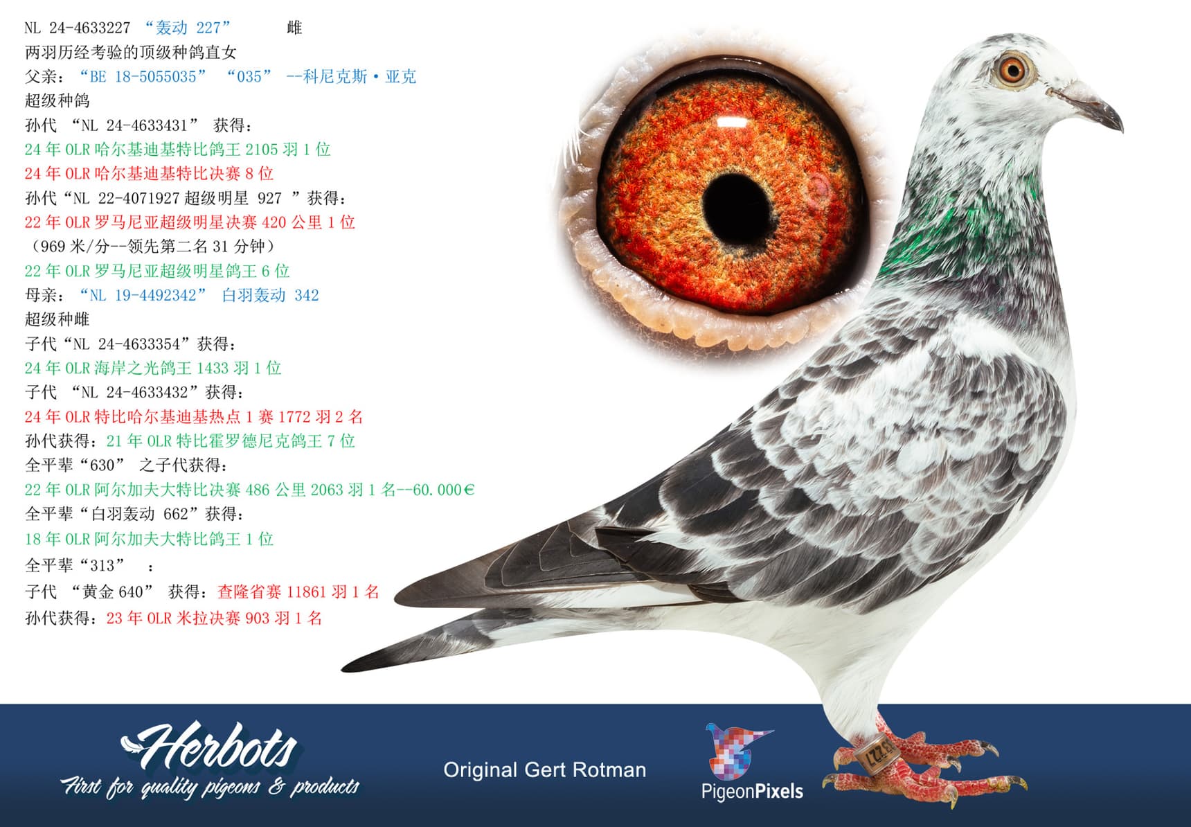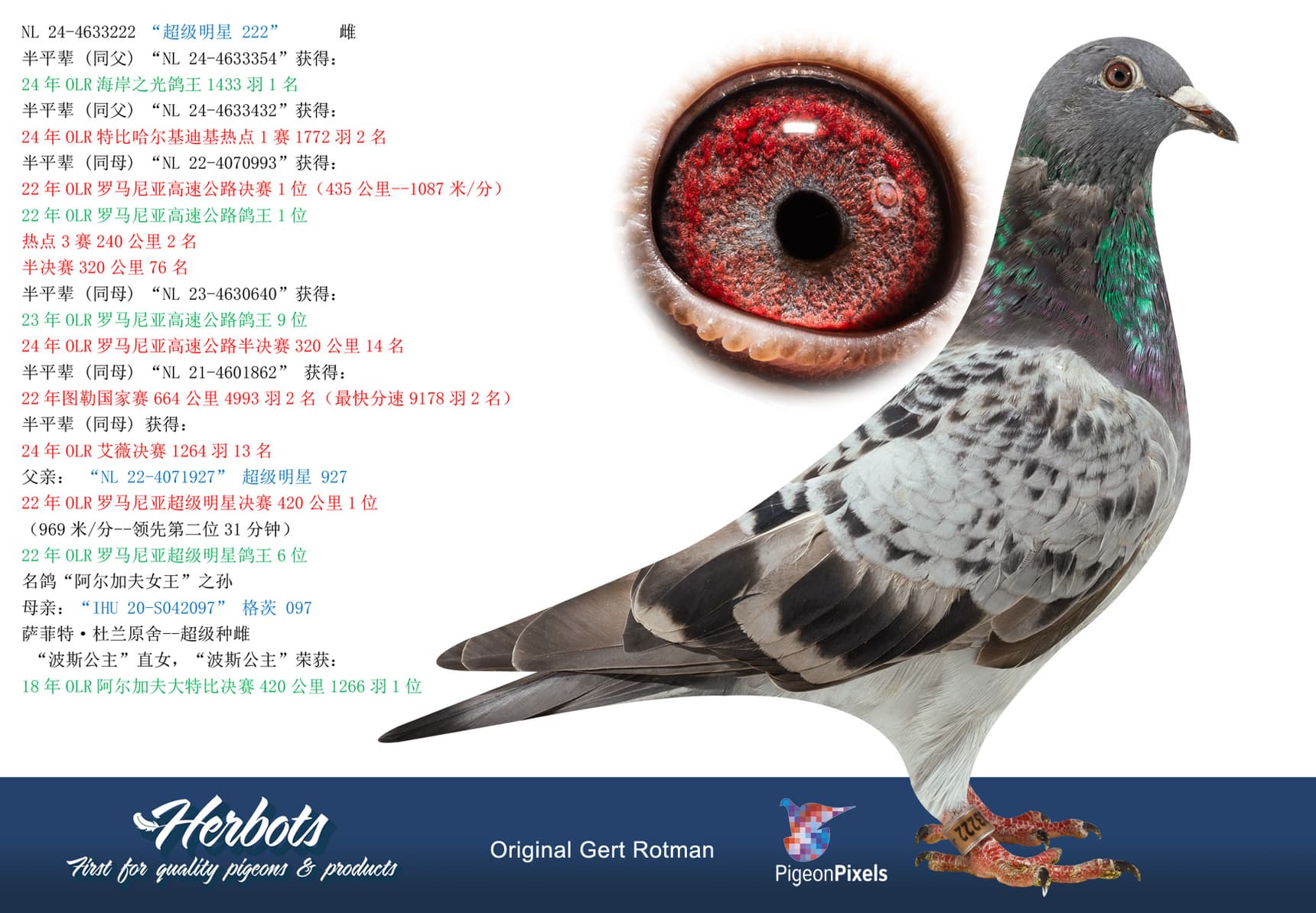 Mother is a full sister of “Jacinta”“Jacinta” won 3rd International Ace Pigeon Hotspots SAMDPRShe won 3rd / 2,071p – 27th / 2,334p – 31st / 2,216p – 52nd Final 1,548 pigeons