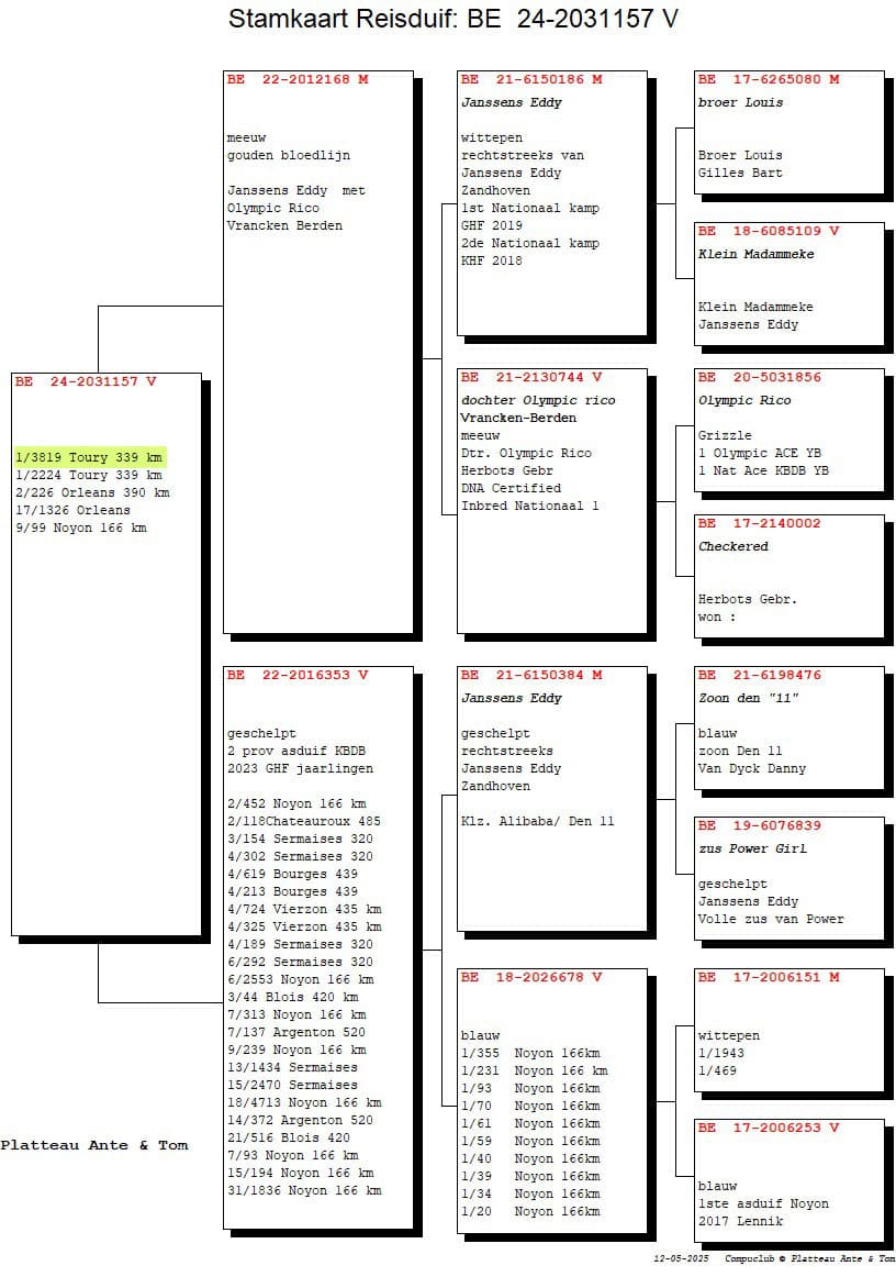 This year they have already won 23 first prizes with the highlight last weekend 10/05/25 the 1st prize at Toury (339 km) against 3,819 old + yearlings. (1,301 m/m)
