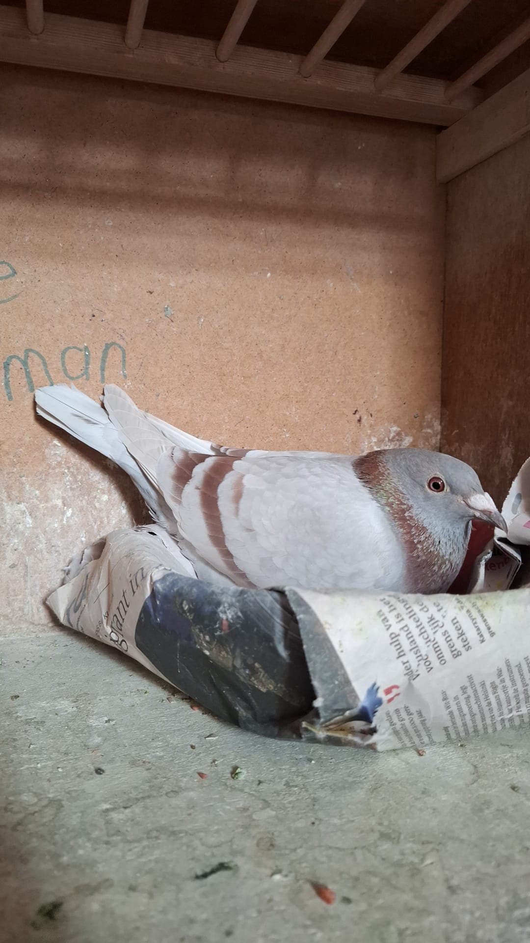 We do not allow the pigeons to hatch their young. In that case, we remove the eggs and replace them with stone eggs, so that they can continue to brood on them. Sometimes we forget to replace the eggs with stone eggs at the breeders' and accidentally end up with a youngster. That youngster is then sometimes moved to a pair of racing pigeons, but normally we let both the breeders and racers brood in April, May, June and August.