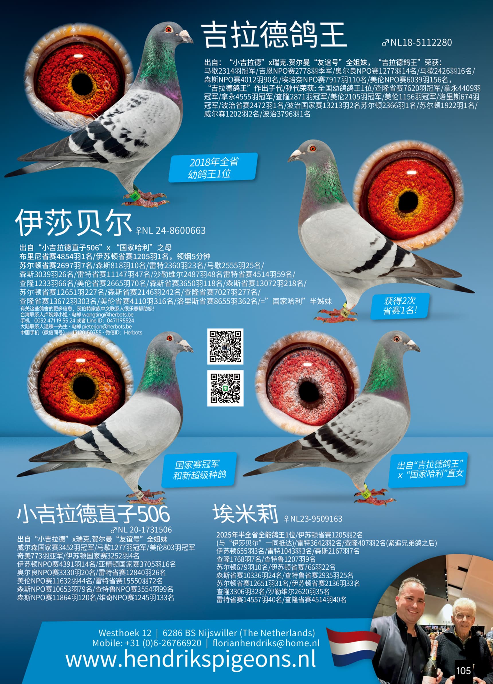 The most recent top pigeon is "24-663" (out of super racer "Kleine Gerard 506" x "Mother National Harry"), named after his daughter "Isabel." In 2025, "663" won, among others: