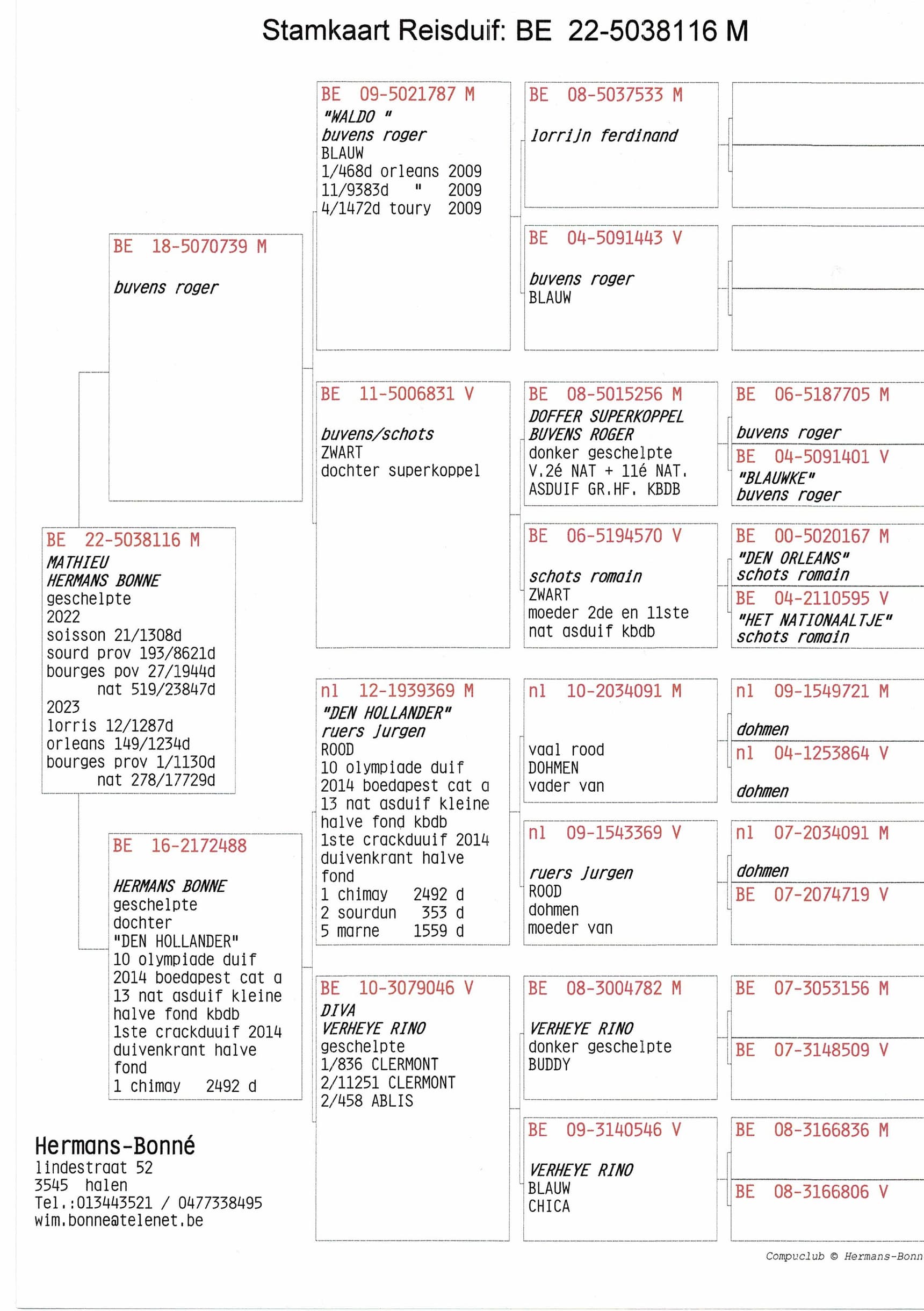 For the tandem Hermans – Bonne, 2023 has already started well in the national races, they also won a region once this year in preparation, but now it was completely hit on Bourges. Their yearling “Mathieu” was the best in Limburg among the yearlings against 1,130 pigeons. Bourges is exactly his flight because last year he was also early on this, himself a medium cock in terms of build but without much weight. This clapper is again a grandson of their foundatione breeder Hollander, this breeding line continues to do very well year after year.
