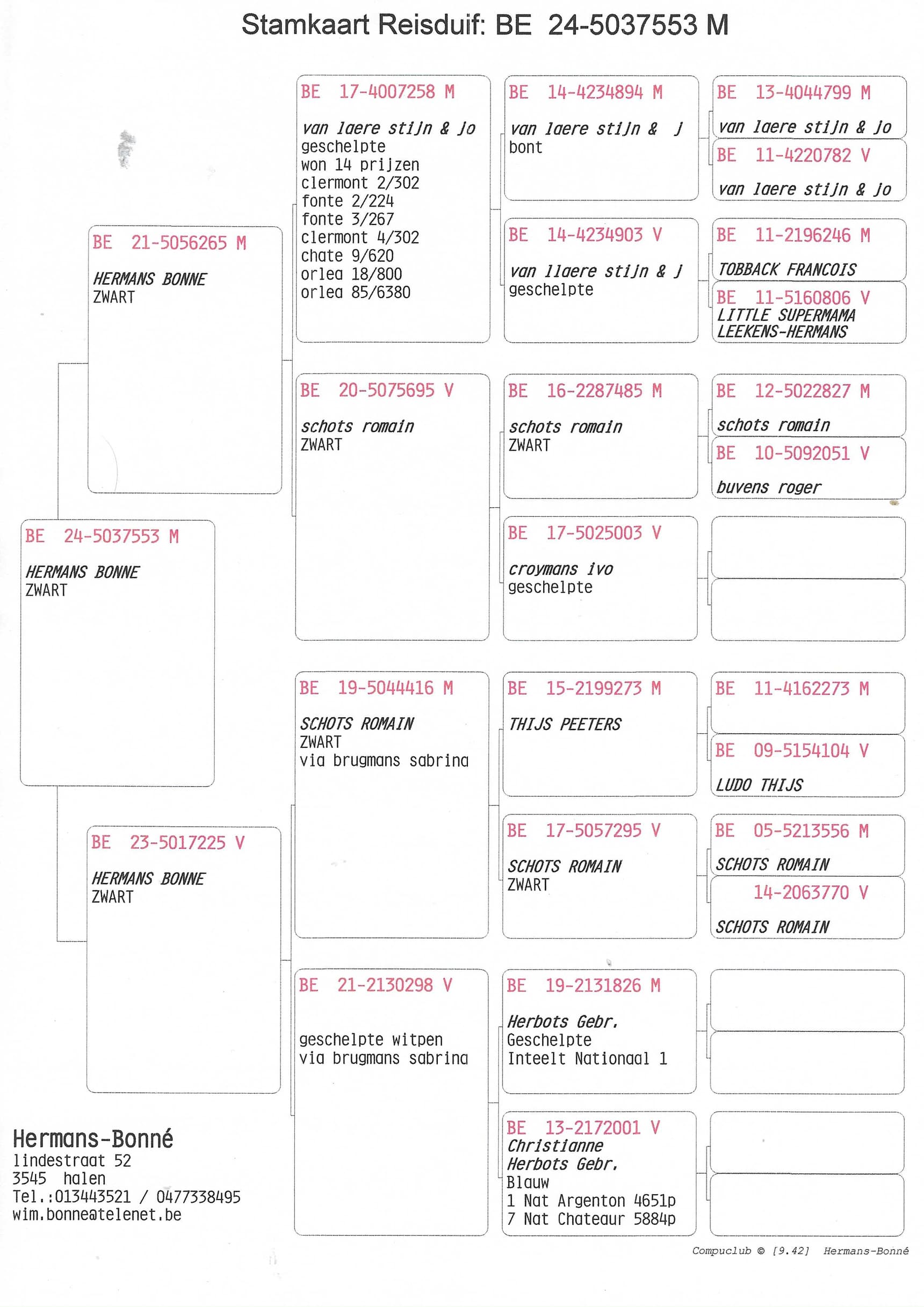 Son of “258/17” Checkered Stijn & Jose Van Laere x “695/20” Black Romain Schots