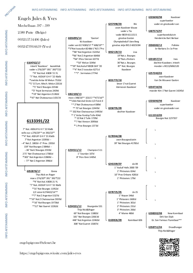 Son from “952/12” Son Tornado Couple Van Eynde – Goovaerts x “Jolien” best breeding hen Engels