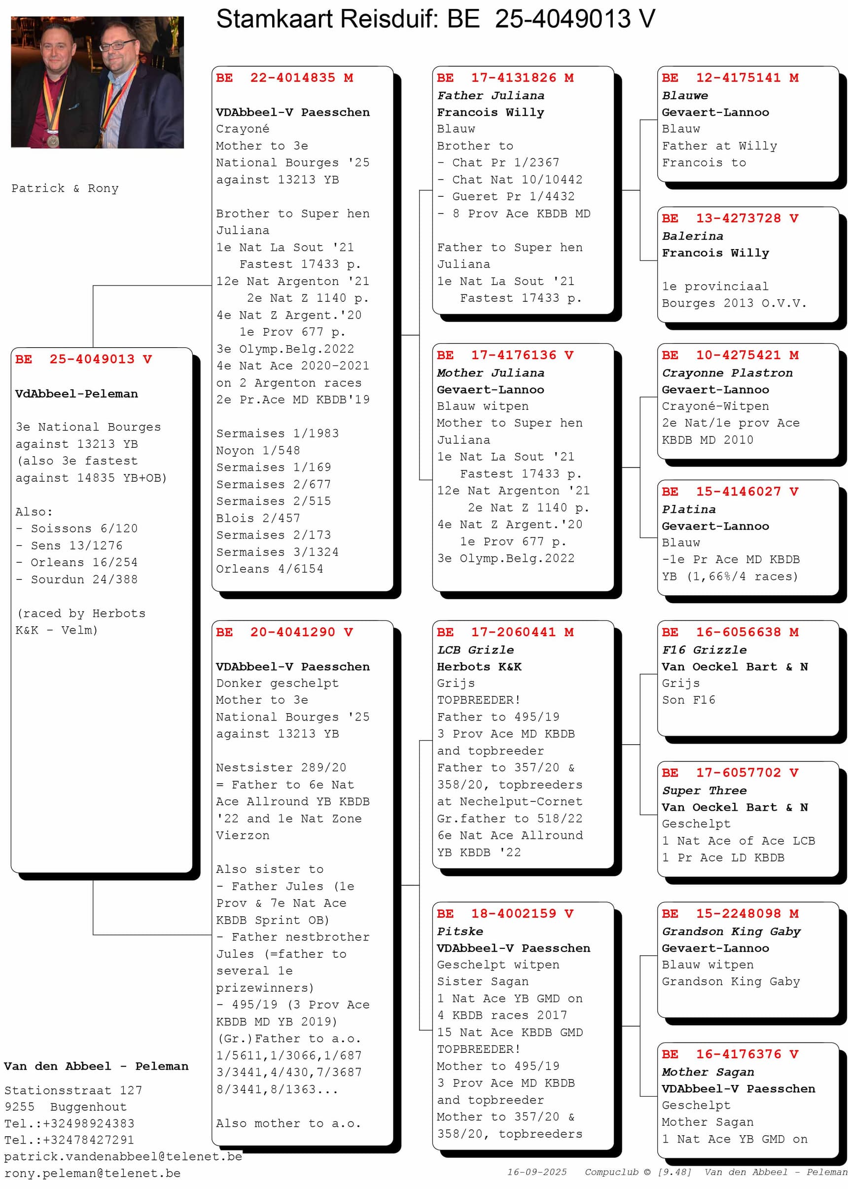 Herbots Jo & Raf – Multiple national ace pigeons heavy middle distance KBDB 2025