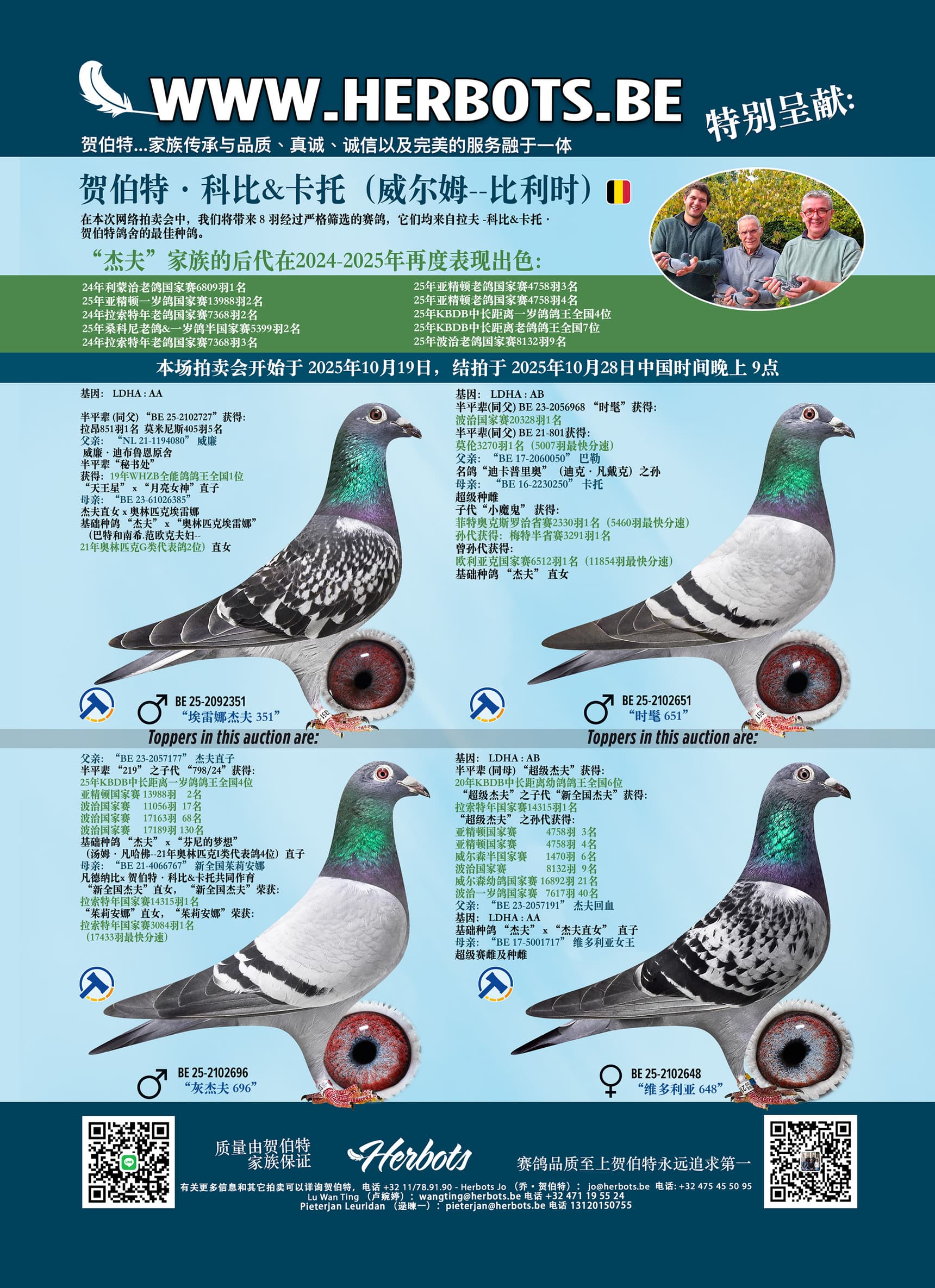 KOBE & KATO HERBOTS ARE OFFERING A UNIQUE GROUP OF STRICTLY SELECTED PIGEONS ON THE PIGEON BIDS INTERNET AUCTION.