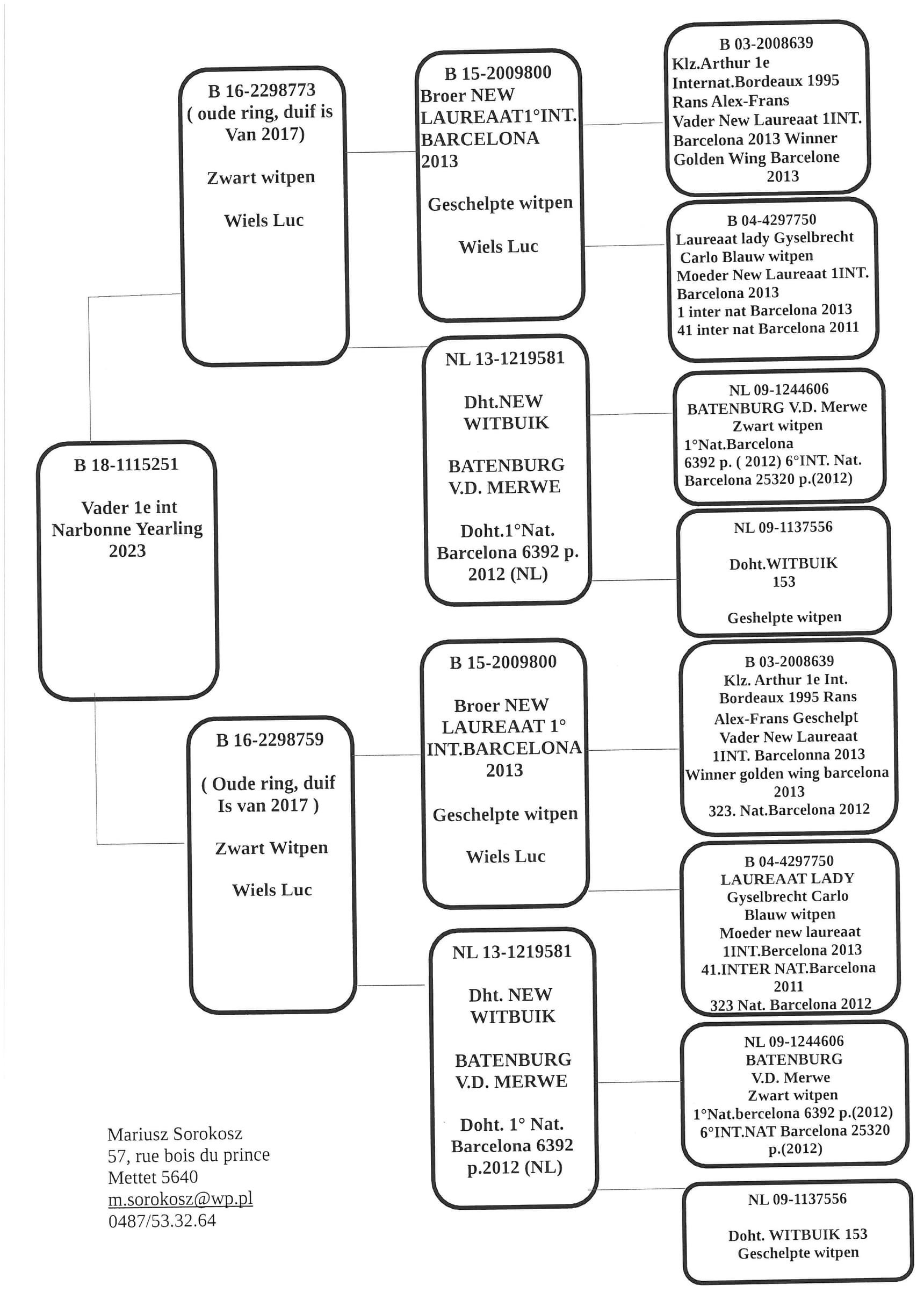 马利尤斯·索罗科斯(sorokosz mariusz )荣获拿邦国际赛一岁组冠军 - 国家赛一岁组6100羽冠军