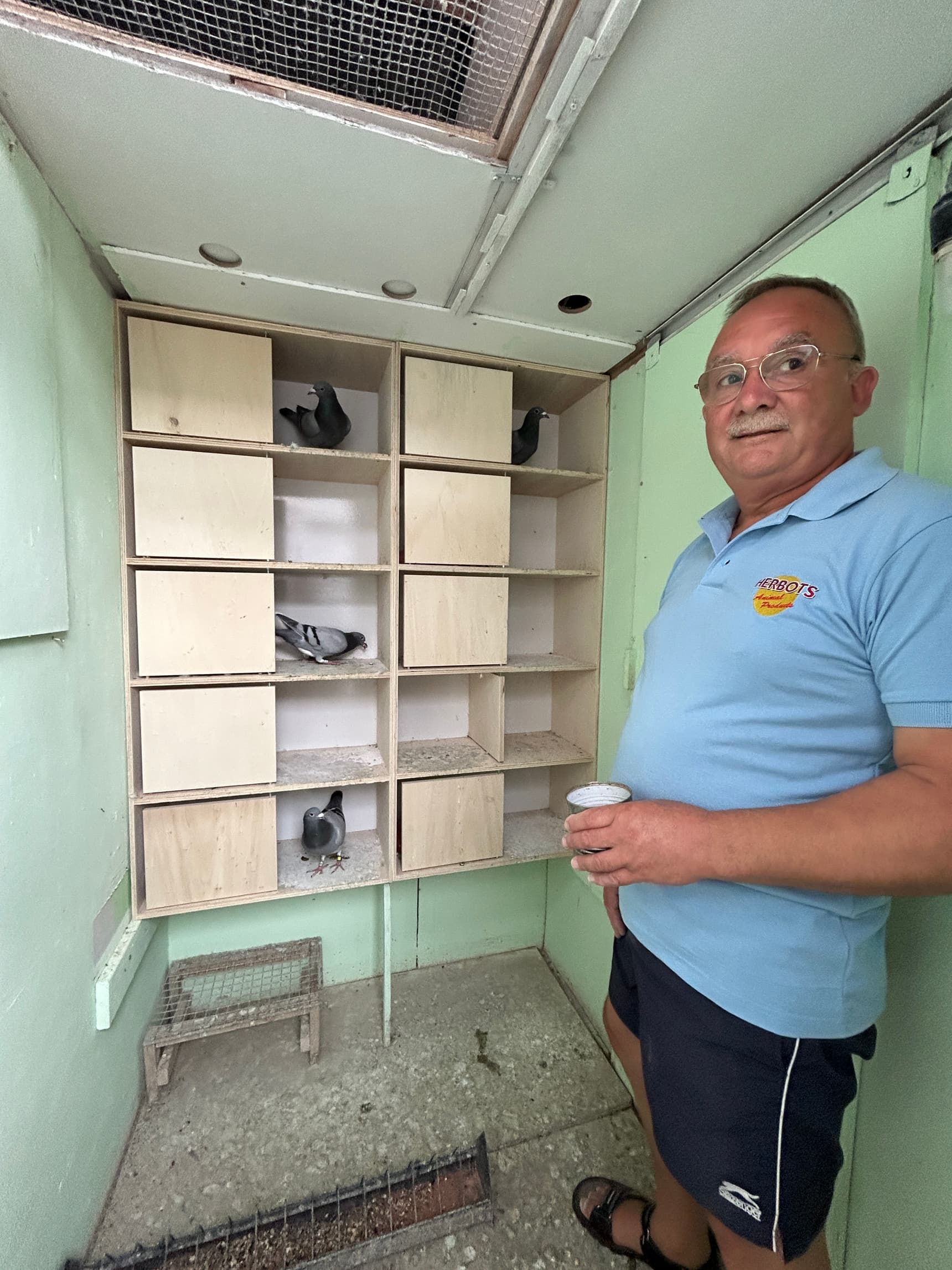 Walking into these small lofts, you feel good—everything is designed for the pigeons' well-being, and the cleanliness, both on the floor and in the boxes, is truly impressive. Katty, Pierre’s wife, doesn’t hesitate to lend a hand in the daily management of the loft.