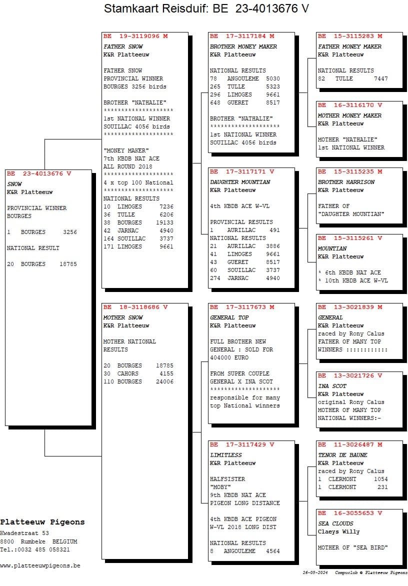 After all, he knew that the father, top breeder "Freddy", was still in Platteeuw's loft.