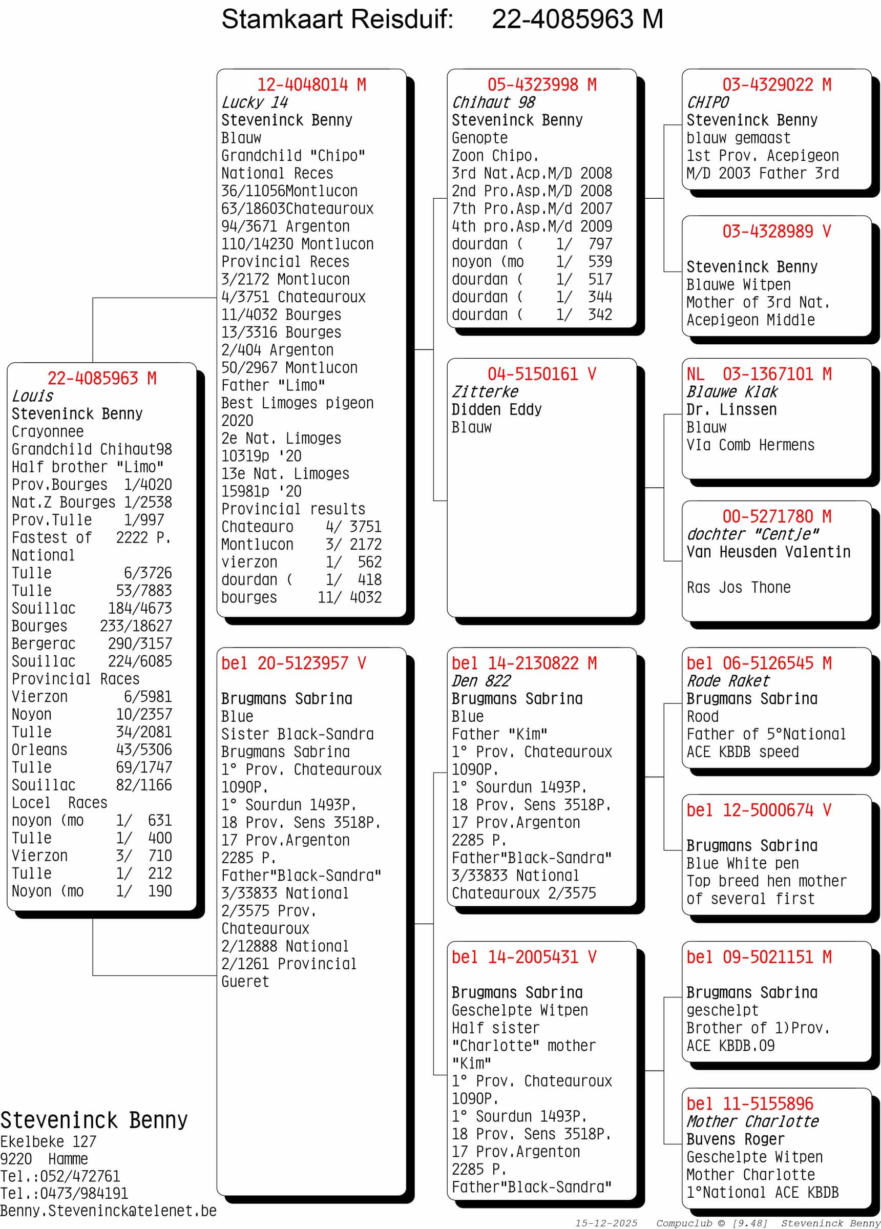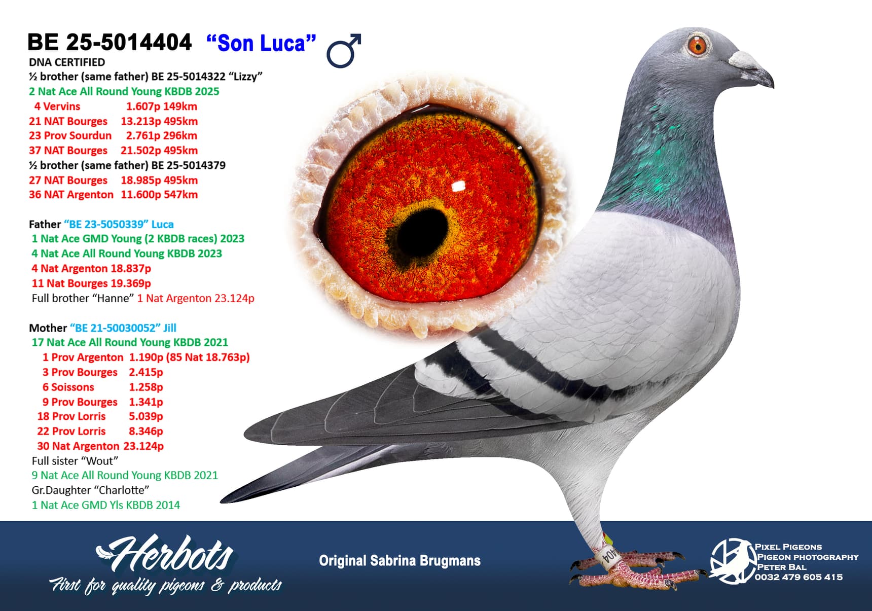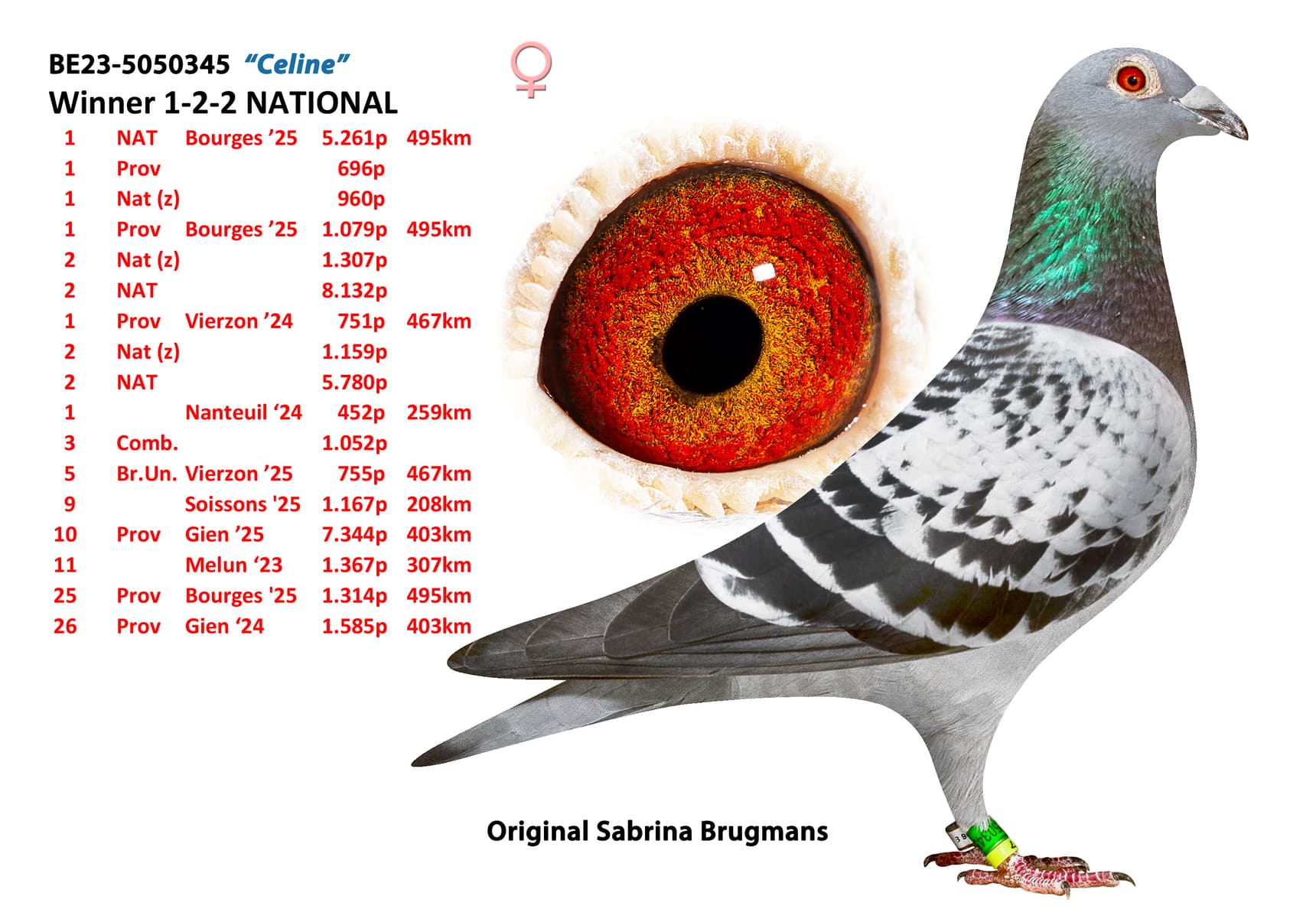=> BE 25-5014322. "Lizzy" was 2nd National Ace Pigeon All-Round Young KBDB 2025 and won 21st Nat. Bourges 13,213 p. and 37th Nat. Bourges 21,502 p.