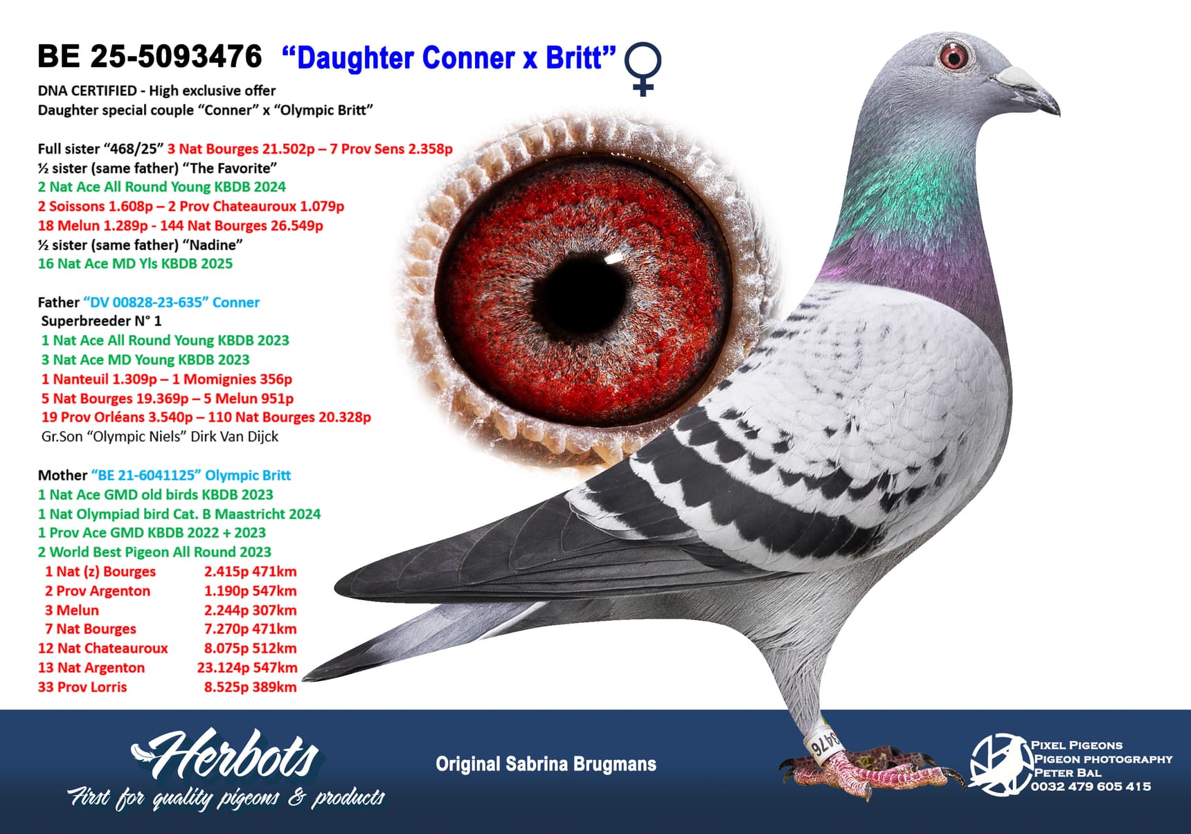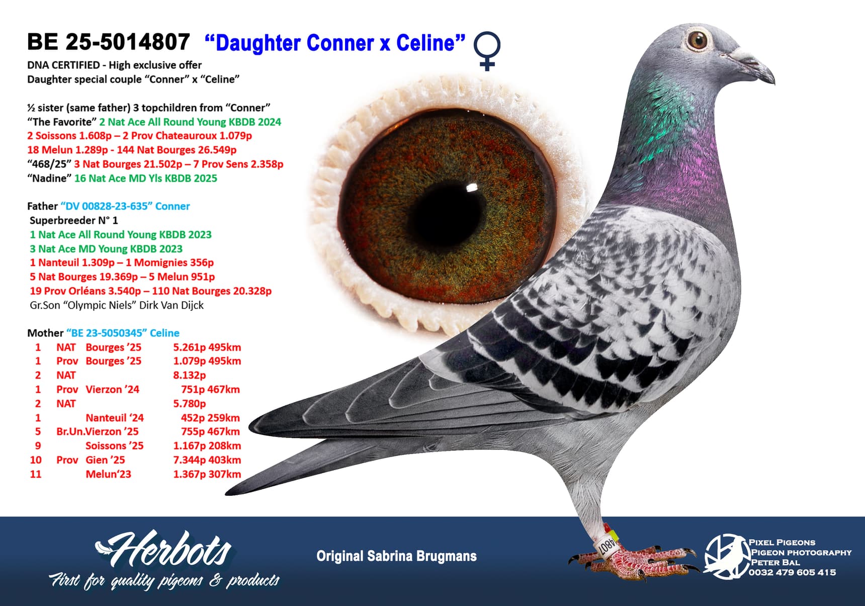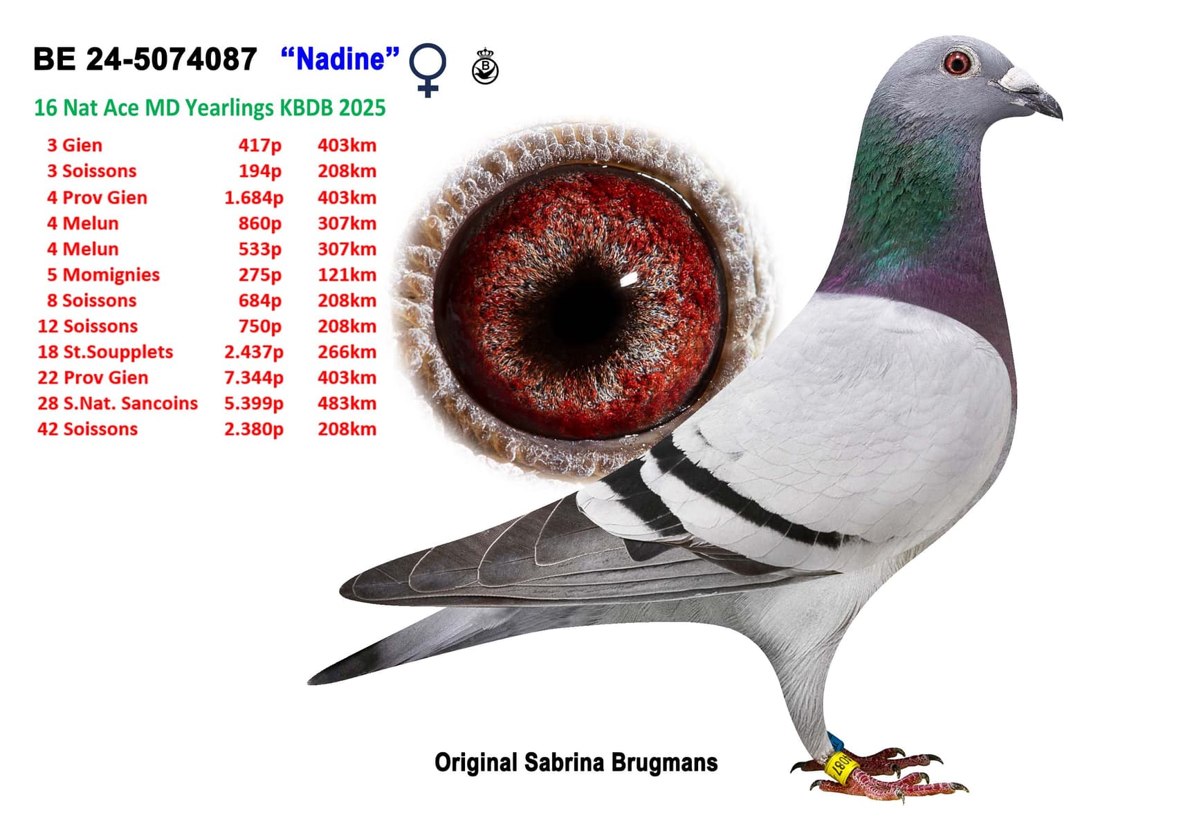 16 National Ace Pigeon middle distance yearlings KBDB “Nadine” ( Daughter Conner )