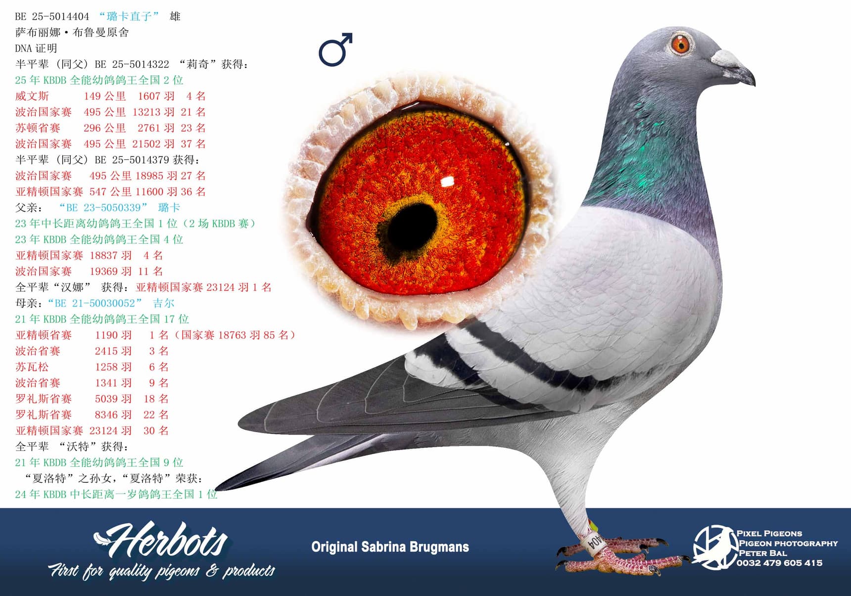 Son of "676/15" Carlo Roger Buvens. He is a son of "Marie," 6th Nat. Ace Pigeon heavy Middle Distance KBDB 2013,
