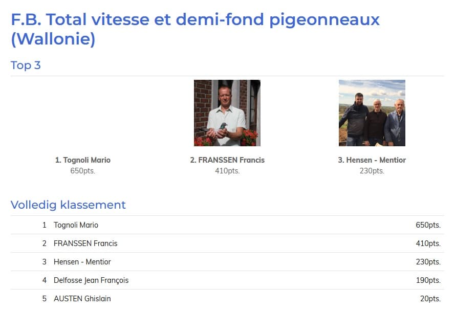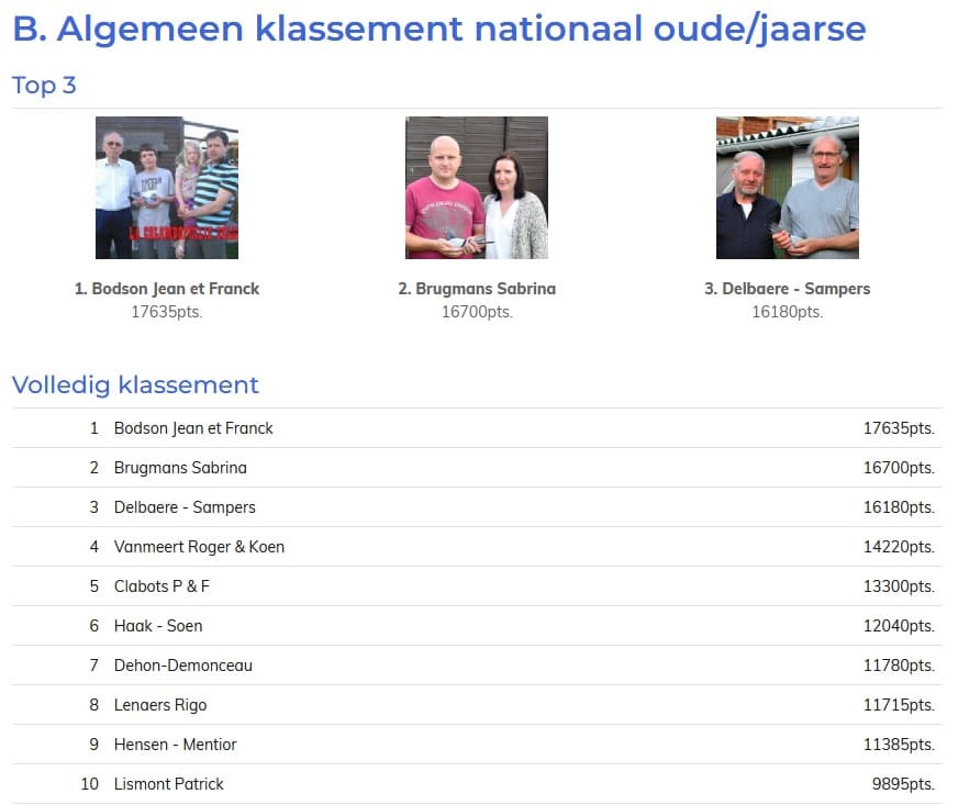 This season will be the first year of the Herbots Championships, in the past called the “LCB Championships” where little or nothing has changed. The Herbots Team thanks all fanciers who have registered so far and submitted their prizes online so far. We note that the interest in these championships is very high and that gives us great pleasure. We therefore also give you an intermediate score of all championships that are currently running.