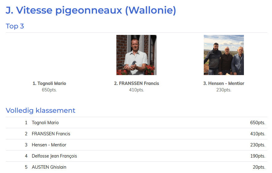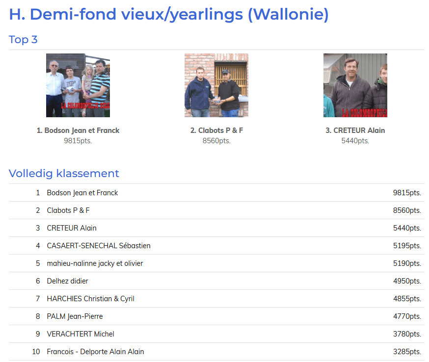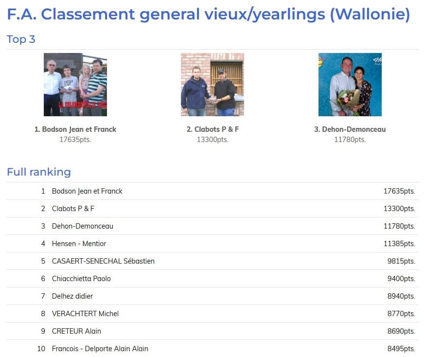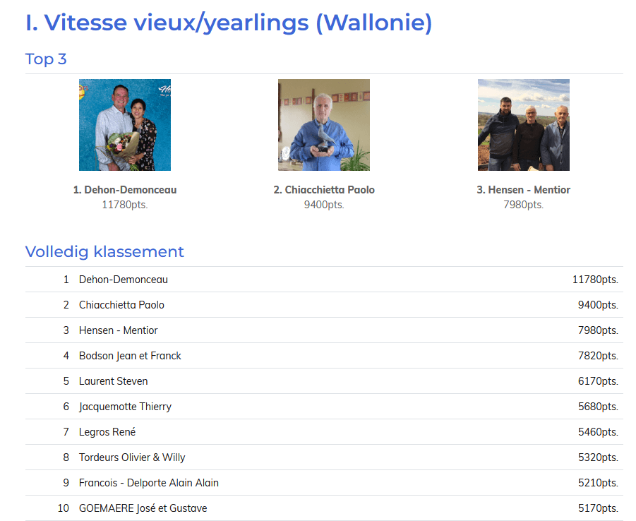 I. Speed ​​old birds/yearlings ( Wallonie )