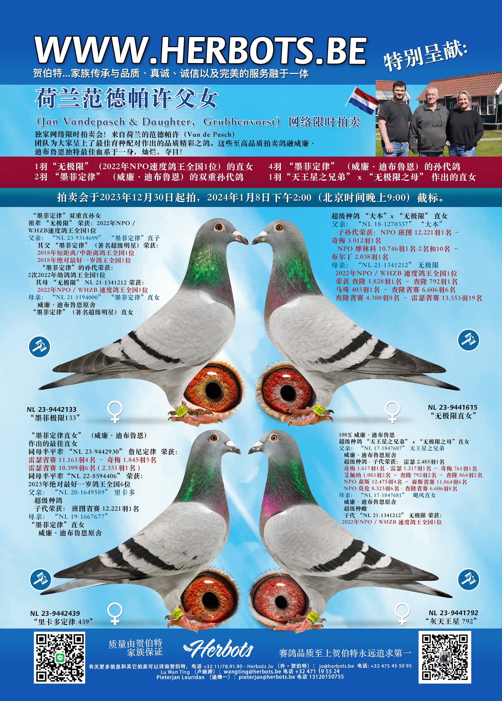 Especially after the success of Willem De Bruijn's auction last week, Team Van de Pasch is auctioning some top pedigrees here.