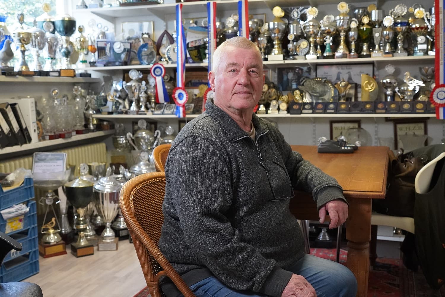 The overview in detail of Jan's treasure trove of national trophies and national ribbons is enormous, you could fill an entire house with it, but time and time again during each visit, Jan proudly showed this room. He was proud of his pigeons and what he had achieved.