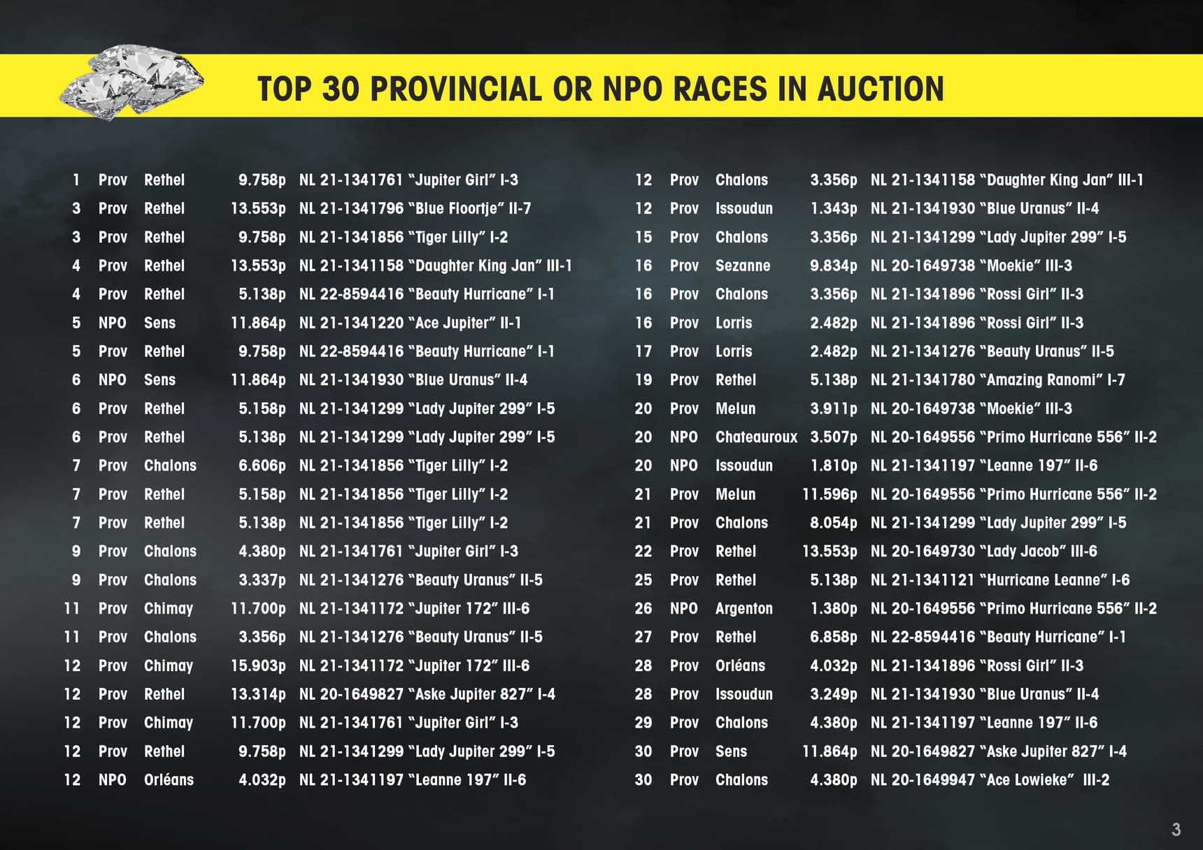 Here we introduce you to several other toppers from this unique auction, each of which has achieved several top results from 100-550km.