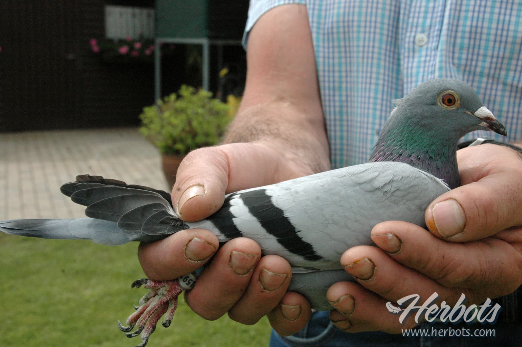 The pigeons that are being raced on total widowhood had a winter breeding. During Spring they all got together once more and could breed for a few more days. Once the weather allowed it the training basket came into the picture and it went via the short distance races to the middle distance to the nationals. At basketing the sexes can come together for one hour, are being separated, are being fed and are being basketed after one hour quietly. At arrival they stay together for about 2 hours. Feeding has no secrets over here, until Tuesday it is 50% Diet and 50% Sport and after that 100% Sport. The pigeons can always eat as much as they can. In a medical way the pigeons are being cleared from trichomoniases before the start of the season and at basketing and at arrival they get a yellow drop in the beak. Vitamins at the end of the week and at regular base an eye drop. This is it.